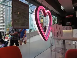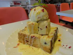 特地去逛逛久違了的慈雲山,來到近慈雲山中心附近,被門外的特大心心吸引,望望剛好到下午茶時間,不如來個甜品吧! 甜品店座位與座位空間寬敞,蠻舒適,而廚房以開放式設計,可看到店員們悉心準備甜品。旁邊設有自助式免費朱古力噴泉,噴泉是士多啤梨味來的,可自取棉花糖蘸點呢。侍應面帶笑容,並貼心介紹了多款店內推介的甜品,小妹先被黑松露吐司粒粒山賣相吸引,而味道是點選的3個甜品中最好的,真心推介。黑松露吐司粒粒山以多舊吐司砌成,而精華所在莫過於黑松露雪糕吧。雪糕非常軟滑之外,由於黑松露及奶味甚為濃郁,吃過後味道仍能在口中散發。而小妹最怕怕吐司太燶及太硬,而這個吐司外層也非常脆口,沾上煉奶後亦不太膩。原本是點選店內熱門的布甸椰皇子,只可惜一早已售罄><雖則對榴槤不是有特別大興趣,但最後試了個榴槤飄香椰皇子。甜品味道比想像中更好,榴槤好新鮮,內裡的啫喱比較清淡,不過最驚喜是配襯的水晶粒粒,非常爽口,與榴槤味道好夾之外,亦令整個甜品更有口感。至於酥皮特濃72心太軟,店員說製作時間可能有點出入,如果沒流心的話可再返整,非常貼心。甜品賣相精緻,不過以味道而言,小妹喜歡傳統的心太軟比較多。打開脆口的酥皮後,是朱古力心太軟,味道不錯,朱古力味甚濃,不過當整個吃完後就有點膩,幸好有旁邊的雪糕中和膩度。而心太軟上層是流心的,帶有香濃的朱古力味,也許在時間上真的有少少出錯,底層的比較乾身,不過味道也還好,最後由於不想浪費食物,所以沒有再請店員再整了。甜品的質素及賣相也不俗,而服務亦不錯,在品嚐甜品過後,店員亦體貼地送上店內提供的水蜜桃花茶,感覺真的如名-「甜入心」。…查看更多