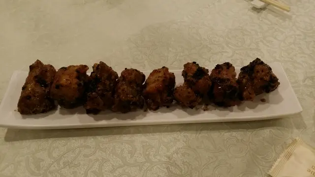 經常見傳媒介紹拍板小館,食物有質素,地點方便泊車,聽說老闆有很多藝人朋友,是藝人聚腳地。 每天都有 $1 特別優惠,今天我們一行8人,選擇了果皮蒸大連鮮鮑,果皮磨蓉放面,蒸得腍滑。前菜涼拌雲耳酸甜平衡,頗討好。 欖角骨先到,一字排開,排骨有咬口,味道帶甜,欖角味不重,不油不膩。蝦仁炒蛋考火候,蛋滑蝦仁爽。百里香牛肋骨已起肉,軟腍入味帶少許肥,有牛味,值得推介。 花膠扒是拍板小館的拿手菜,厚身軟滑,鮑汁濃厚美味,吃過花膠後,不想浪費醬汁精華,整煲回廚房加入粗麵伴食,醬汁滋味,可惜粗麵仍有點點鹼水味,算是美中不足。 蔥油雞用新鮮雞,嫩滑有雞味,皮下脂肪少,還附上腑胵,蔥油味淡,下次還是預訂炸子雞吧。 啫啫芥蘭煲後,再來金牌銀芽肉絲煎米粉,香口而不油膩。送上甜品桂花紅豆糕,甜味適中,兩種口味集一身,蠻特別,雖然個人還是喜歡分開食。 拍板小館以小菜為主,但用料有堅持及火候控制得宜,這餐每人平均消費約 $300,不收開瓶費,是聚餐嘆酒傾計的好地方。 …查看更多