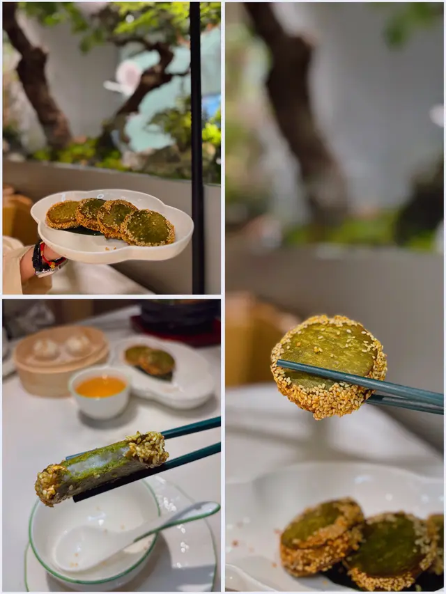 以杭州龍井茶入饌而享負盛名的綠茶餐廳,香港的第四間分店在奧海城開業,讓人急不及待品嚐一場茶饗盛宴。餐廳內部園林景致古色古香,播放悠揚中樂,服務生穿著古裝,氛圍古樸。📌龍井烤雞 ($138) 原隻春雞現烤,外皮金黃,脆嫩多汁,龍井茶的清香滲透其中,上桌後才切件。蘸上特製辣椒粉,香辣惹味。📌南乳醉鮑魚 ($98) 薄切彈牙的醉酒鮑魚片,灑上南乳汁,鹹香與酒香完美融合,搭配紫洋蔥幼絲,清新爽口,層次豐富。📌粉絲裹蝦 ($108) 即席在桌上以瓦斯爐加熱,鮮嫩大蝦熟度剛好,專人將材料拌勻。鮮蝦與粉絲吸收蒜香醬汁,口感惹味爽滑。📌龍井檸檬茶 ($28) 小熊造型的龍井茶冰端坐杯中,隨著冰塊溶解,滲入香氣四溢的檸檬水中,清新可口。📌暴打鳳梨茶 ($28) 小熊龍井冰同樣端坐杯中,鳳梨汁香甜潤喉,還有粒粒鳳梨肉,味道獨特。📌江南綠茶餅 ($28) 芝麻外皮烤得酥脆,芋蓉餡料香滑軟糯,甜度適中,連盡兩個也不膩不濟。📌西湖雷峰塔 ($28) 以淮山和牛奶製成的奶凍,倒模精緻,淋上綠色醬汁,增添清甜味與儀式感。綠茶餐廳的菜式展示了傳統菜餚與時尚擺盤的完美結合,是江淅菜一場難忘的視食與味蕾之旅。…查看更多