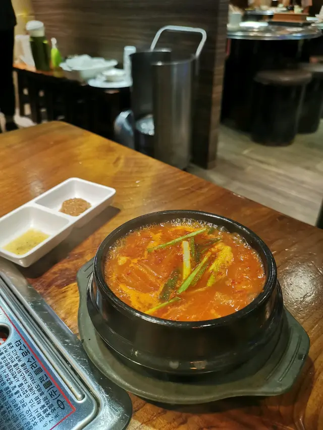 今晚黎到尖沙咀金巴利道,一家由韓國人主理的韓國料理店。除了品嚐水冷麵外,還品嚐了泡菜湯配飯及海鮮煎蔥餅。水冷麵麵條Q彈有勁,搭配上韓式醋及辣醬,湯汁甜酸爽口,吃下去時清涼解渴。麵條沒有過多的調味,反而突出了麵條本身的彈牙口感,十分對味。泡菜湯配飯係典型韓式風味,泡菜湯汁口味濃郁,酸辣適中,搭配上一碗香噴噴的白飯,真是不能更韓式了。泡菜的辣既開胃又養胃,再加上滑嫩的豬腩肉,既飽腹又不會過於油膩,很適合夏季享用。這家店的海鮮煎蔥餅真是非常足料,外酥內軟,餅皮有著恰到好處的鬆脆感,裡頭則是滿滿的墨魚粒和蔥段,蘸上店家特製的醬汁,忍不住一口接一口。…查看更多