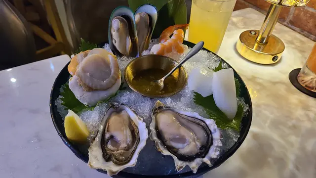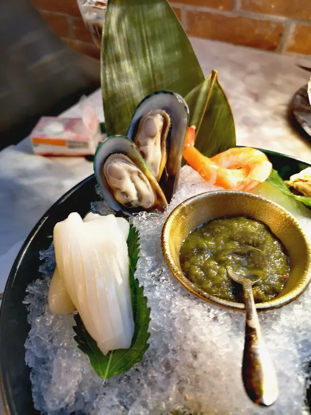 餐廳:So Bar地點:尖沙咀加連威老道菜式:蘇媽.蘇媽馬來西亞茶餐室嘅姊妹酒吧餐廳餐牌:蠔吧小食,主菜,燉飯/意粉,小食,多款酒精飲品,都有非酒精飲料同汽水。先叫兩杯非酒精飲品。Princess $78 另加一Grapefruit juice, cranberry juice, lemon juice, rose syrupPrincess色水呈淺紅色,面頭配有一片果乾。飲落味道偏酸,主要係檸檬汁加西柚汁,好開胃。Passionfruit Lime Soda $78 另加一Passionfruit juice, lime, sparkling waterPassionfruit Lime Soda色水呈黃色,面頭一片青檸乾,味道真係熱情果汁加青檸汁,都係偏酸好開胃。泰式海鮮拼盤 $188 另加一泰式海鮮拼盤有五款海鮮各兩隻擺得靚靚冰鎮住上枱,配有一片檸檬同泰式酸辣醬。生蠔連殼,質感實在又滑溜,唔會太鹹,唔錯。魷魚好大片,而且口感非常爽脆。去殼蝦好鮮甜脆口。青口連殼,非常大隻,而且算好嫩。扇貝已去殼,非常厚肉,而且好嫩口。個泰式酸辣醬簡直畫龍點睛,令所有海鮮都非常好味。醬油漬紅蝦 $108 另加一去殼紅蝦四隻一開二,口感非常黏口,勁新鮮,伴有三文魚籽配蛋黃一隻,服務員建議可以撈好先然後淋落紅蝦一齊食。呢個配搭好夾,鹹香三文魚籽配滑溜蛋黃再加鮮甜紅蝦刺身好正!入面高樓底,裝修不俗,用雲石枱配紅磚牆,枱上面有靚靚坐檯燈,收工飲返杯都幾好。…查看更多