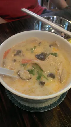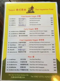 因為老婆報咗個課程,晌九龍城上堂,所以,近來多咗晌依區出沒。而佢又鍾意食素,偶然發現依間泰菜素食小店,就專程送佢返學,兼一齊食餐晏。基本上唔使多講環境,小店細到門口都擺埋枱,地方一眼睇晒,基本裝修,就無任何多餘擺設。因為環境實在好淺窄,唯一「貼心」就喺枱下有個掛鈎勾住個背囊