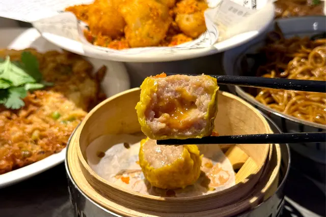 流心燒賣 ($39) 燒賣口感相對結實,咬開內藏流心麻辣醬,相對之下辣度比鐵板麻辣小籠包溫和。