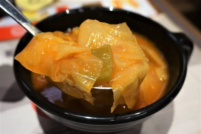 。而呢種甜餐包,又喺細個時豉油西餐中嘅產物,包身非常軟熟,有微微甜品,塗牛油,已好好食。海派牛腩羅宋湯內有勁多料,椰菜、紅蘿蔔、西芹、蕃茄……等等,煮到腍透,而湯味酸酸甜甜,飲落非常開胃;而牛腩似喺坑腩,亦都煮到好鬆化,唔會扯極郁咬唔開,又夠肉香,而且,份量亦唔少。
