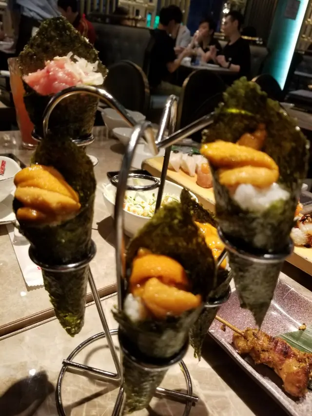 這家放題餐廳下單採用QR CODE方式,大家能夠各自拿着自己的手機查看食物款式,並且下單,省卻把點菜紙傳來傳去的麻煩又環保,這做法值得推崇👍魚片刺身厚切口感真心讚,而且竟然能齊備我三大愛魚──劍魚腩、油甘魚及池魚。新鮮程度高於合格,甜度也不俗,但不能寄望達到貴價貨的質素,略有鮮甜就不錯了。帶子鮮甜度還可以,體積偏小,但跟其他放題餐廳相若,若嫌一片太小,多吃幾片就行,其他貝類刺身質素與帶子差不多。食物的數量有被自動扣減,大概是餐廳怕客人點太多又吃不完,白白增加成本。壽司質素還可以,跟超市買到的差不多。海膽手卷自己沒吃到,這是第二輪點的,吃過第一輪的人都讚好又再下單,質素應該不錯吧。雪花牛肉鍋甜甜的也不錯,牛肉不粗糙,料放挺足的。日式撈冷稻庭烏冬並非軟乎乎的劣質烏冬,口感有嚼頭,吃起來冷冷的挺涼快。辣酒翡翠螺自己沒吃到,也沒聽到朋友評論。香辣魔鬼珍寶蝦味道很詭異,酸辣味道是互相排斥,這是我們咱一吃不完的食物。馬拉盞炒芥蘭苗太健康,對我來說吃放題就該走邪惡路線,所以不捨得花肚量在它身上,但吃過的其中一人說這裡連炒菜的平凡食物都做得好吃。焗BBQ雞翼味道帶甜,狀態正常。燒香草羊鞍以放題來說可接受,但我期望再嫩滑一些,不多,就一些。蒜片牛柳粒肉質粗糙,我們一行十人勝在人多,每人略試一下就把它吃完,否則肯定要剩下。蒲燒鰻魚自己沒吃到,但朋友吃過後再點,看來是好吃的。西京燒比目魚看起來燒焦了,但是沒有影響味道,跟平常的比目魚一樣嫩滑得很,沾上沙拉醬同吃味道特別鮮,比目魚神奇在不管在哪裡吃都是一樣的味道與一樣的嫩。蒜蓉芝士開邊焗蝦一出場吸引眾人目光,黃金色的芝士鋪滿蝦上,雖然芝士味不算濃郁,但經過烤焗的芝士份外誘人,而且芝士焦了的脆皮口感又是令人愛不釋手,用它來打卡絕對有呃like能力👍天婦羅蝦質素合格,但如大多遇到的,炸皮不夠乾爽的脆,不過既然是大多數的問題,這裡又是任吃模式,當下情況並無大礙。炸吉列蠔出色,外皮酥脆不油膩,內裡保持濕潤,兩者平衡恰到好處。芝麻雞翼外脆內嫩,我發現它跟比目魚一樣,不管哪裡做的味道都是不變,品質一樣好。我們十人不算少,點的東西很多,有時候來不及即時吃,也許燒物放涼了影響質素,鹽燒雞翼吃起來有點硬。匆匆吃下鹽燒牛舌,未有察覺特別之處。燒雞軟骨硬得只能直吞,但我當然不會這樣做,捨它而去是常識吧。燒菠蘿只要菠蘿是甜,水份充足,沒有燒焦自是好吃,難度不高,這裡完全做到。每次吃放題到後段就想吃粥,因為前段吃太多生冷刺身壽司,有些暖物落肚感覺舒服起來。鮮蟹粥已成綿綿糊狀,不用咬多方便,溫度比暖高一些,個人喜歡吃更熱,但當下亦能做到暖胃效果。味道挺好,但蟹的味道只是輕輕帶過,主要是結合了其他食材與調味做出來。紫心香芋丸及脆炸貓山王是我吃放題的指定甜品,質素如同炸吉列蠔出色,表皮很脆,內裡餡料濃郁香甜。尤其榴槤餡嚇得怕榴槤的人威脅着我若不遠離他,就要吐了,哈哈。甜品與水果我沒吃到,但朋友表示不錯。雪糕選擇不是平價貨,至少有Haagen-Dazs及Movenpick,其他看起來也不俗。晚飯當日前後七天若有出席者生日可獲贈香檳及蛋糕,香檳是有氣蘋果汁,雖然是便宜貨,但我喜歡有汽飲料,這個味道也沒有過於人造或死甜,而且沒有生日人士出席喝不到,所以還是感謝餐廳的送贈。我很怕吃口感軟乎乎的蛋糕,這個雖軟,但沒到海棉蛋糕的軟,味道不會太甜,朱古力味挺濃郁,我覺得有一點好吃,不過始終是軟的,我不會自發點來吃😅除了下單的食物還有自取的,不過下單的款式已經吃不完,這些沒嚐過。晚上8:30進場可享2小時45分鐘用餐時間,這是最後一組用餐時段,相對其他時段長一些。我們一行十人佔上五張桌子,座位說不上寬敞,但不抗拒親蜜一點坐在一起。當晚是星期六,餐廳空桌子數目比預期多,我們可提早入座,只需待到8:30pm才能下單。我對放題的要求是食物好吃,上菜速度快,服務員趕快收走空碟子。在短時間進食大量不同食物,也沒空關注其他方面太多。這裡上菜速度頗快,沒察覺掉單,侍應以中等速度收拾碟子,已經足夠。食物質素以放題來說很好,真正難吃的東西只有香辣魔鬼珍寶蝦,而且好吃的款式不少。價錢公道,人均$280,放題也是自助餐一種吧,食物選擇已經綽綽有餘,這裡的性價比高於自助餐太多了。…查看更多