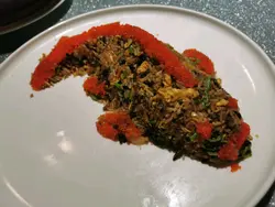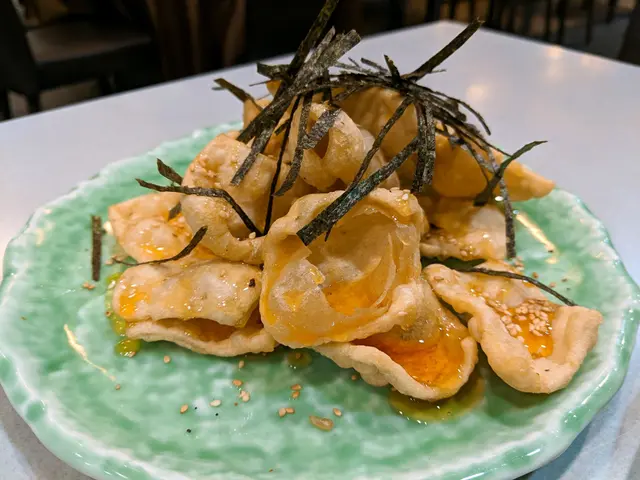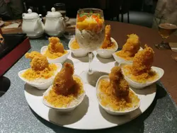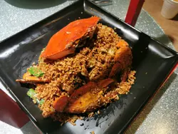 約了舊同學食飯,尖沙咀最就腳,有人來過覺得這裡地方及食材用料都不錯,所以今晚一於在這裡相聚。餐廳地方寬敞,有大檯也有窗邊卡位,更有包房,確是相聚聊天的好地方。這裡主打雖然是海鮮,但其實其他小炒也很出色!《黃金流沙蝦球》~嘩! 單看賣相已嘩聲四起,外圍是黃金流沙蝦球,中間是一杯芒果雜果沙律,賣相別樹一格 !外脆內嫩的大蝦彈牙爽口, 鬆化香口 ,再配以冰凍的芒果沙律,口感刺激豐富😋《避風塘炒蟹》~這裡的招牌菜,香噴噴的炒蟹令人垂涎三尺,蟹肉吸收了蒜香味道,令新鮮蟹肉香惹好味,風味濃厚, 色香味俱全,必食 👍🏻《古早銀芽炒粉絲》~銀芽清爽惹味,粉絲質感輕盈軟綿,滋味滿分!《飛天水東芥菜》~芥菜爽甜,鹹香惹味《食神炒飯》~另一招牌菜, 賣相相當別緻 。以意大利米、蟹子、蝦粒、雞蛋絲等食材料炮製而成,視覺和味蕾同得享受!最後當然要食招牌甜品《海苔脆脆》~香甜脆脆加海苔絲,入口即融,簡單好味。超滿足的晚餐,有地方特色又不失自我風格,食材用料上乘,價錢大衆化,超讚 👍🏻…查看更多