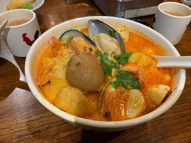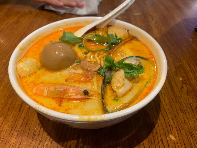 今日難得放假同男朋友去D2 place睇戲,因為外面落太大雨,所以睇戲之前直接係D2 place搵下野食。行經過見到呢間新加坡菜既餐廳,畀個喇沙吸引左入去試一試。我叫左個海鮮喇沙摻摻,摻摻係油麵加米粉,食落口感好好,個喇沙沙好濃郁,配料有2隻青口、2隻蝦,仲有d豆卜,白魚蛋,鹵蛋,HKD69 lunch set連野飲都算幾抵食,因為配料既量都真係幾多😋男朋友就叫左個麻辣無骨海南雞飯,一送到黎見到原來都係正常海南雞,另外再配左一碟麻辣醬,一開始都唔太期望,點知食落係有驚喜!個麻辣醬唔同平時出面買到個d,呢個醬食落係好香,又唔會太辣太油,個雞配埋個醬係一流,值得推介!👍🏻…查看更多