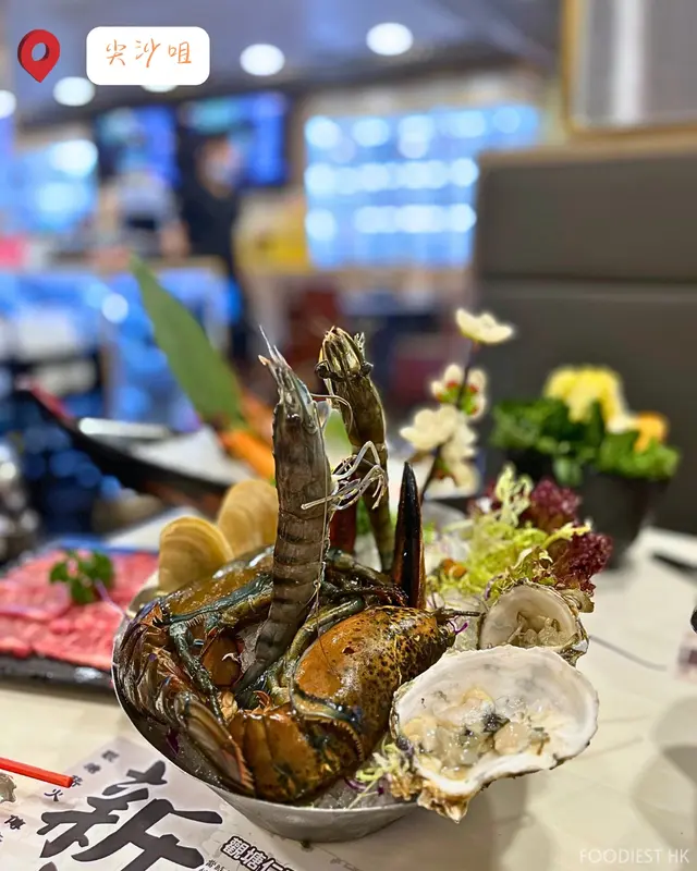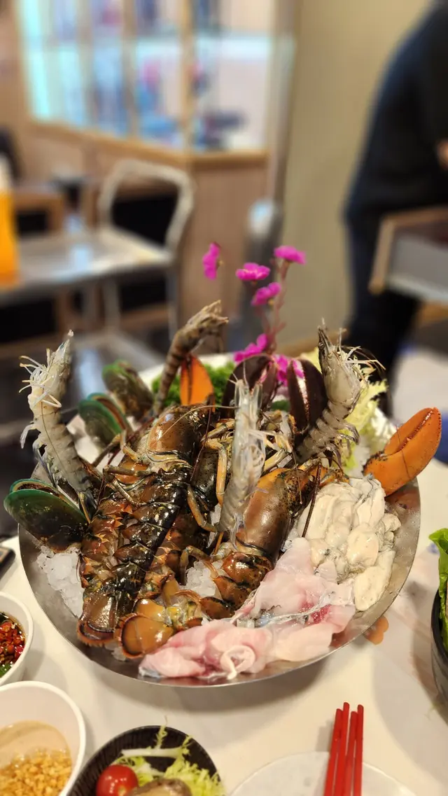 本地手切牛頸脊時令海鮮拼盤包括大蝦 蠔 青口 鮑魚時令刺身拼盤30多款火鍋配料任食任食環節可以劃紙點餐仲包海鮮任食❤️脆鯇片❤️海蝦❤️龍躉片❤️蠔仲有好多款既任食食物台灣黑椒腸 極尚牛肉 貢丸牛丸墨魚丸,小籠包 鴨血特別要提及牛柏葉及響鈴味道好吾錯。最後仲叫左個麵…查看更多