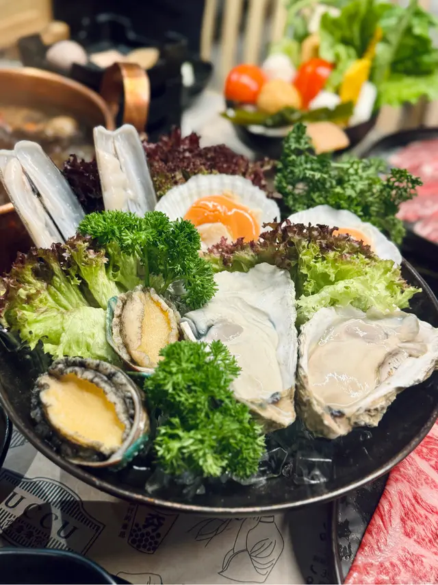 朋友知我大食帶我去食牛大人最新日本黑毛A4和牛套餐,全部上得好快超開始好豐富,果然真食到超飽😆日本黑毛和牛送M9和牛牛丸和海鮮拼盤大大碟,有生蠔鮑魚鱔片,生蠔熟咗都依然好大只脹卜卜鮮甜☺️估唔到牛丸真有傳說中彈彈牛丸感覺,我哋掛住傾計完全忘記湯內和牛,隔了幾分鐘都依然嫩滑無比,牛脂肪分布均勻,入口即溶肥而不膩,牛香味十足🤩*伊比利亞黑毛豬梅肉* 肉質細嫩多汁,味道豐富,口感層次鮮明。 即叫期間限定經典鴛鴦鍋(聰明魷魚沙茶鍋+養生菇菌燉雞鍋)茶鍋香濃帶鮮,搭配養生菇菌燉雞鍋大半只雞在湯內,味道層次豐富,2款既有濃郁也有清淡,食得好自在。 驚喜嘅多款特色鮑魚料理(美乃滋鮑魚酥、柚子燒汁鮑魚、古法醉鮑魚)有多款創新做法,美乃滋鮑魚酥外脆內嫩,柚子燒汁帶清香果味,古法醉鮑魚醉得入味又保留鮮甜。吸引到我仲有懷舊系列菜式-*和牛橘梨豆腐*酸甜配合得好,相當開胃🤤*蝦蝦霸霸脆多士*香脆彈牙而不油膩👏*阿嬤豆乾魚蓉面*感覺好地道,又帶住濃濃嘅傳統風味,仲有豆乾好滋味,魚蓉炒麵味道滿足!而且份量啱啱好好有心思。*烏金墨汁手作腸*香濃又創意,墨魚🦑彈牙。其他仲有三和夜市雞皮卷、海苔鹽酥雞、夜市撈脆薯等懷舊味道同新潮做法結合。 特色甜品芒檸蜜西米爽清新又解膩,蜜桃愛玉冰同伏特加特調嘅港式檸檬茶18+,有果香又有酒香,非常配搭。還有好多台灣直送的蔬菜都好新鮮,餐廳調味醬料非常廣泛。走時候服務員叔叔溫馨提示我食雪糕,我哋九秒九去拿,飽都要食🤣…查看更多