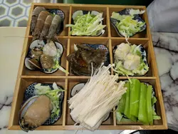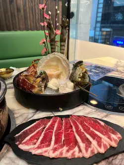 尖沙咀人氣火鍋放題餐廳推出超值早鳥優惠,下午 5:00 至 7:00 時段每位只需 $298,啱哂習慣早吃晚飯的我和先生。用餐前,餐廳會先奉上以茶壺盛載的時令燉湯,湯色清澈、味道鮮美,喝完即刻開胃。之後可選不同風味的雞煲,包括泰式酸辣雞煲、花膠雞煲、韓式芝士雞煲和四川麻辣雞煲。我們選了花膠雞煲,花膠炆得軟腍入味,雞肉嫩滑惹味,非常滿足。吃完雞煲後還可以更換湯底繼續打邊爐,湯底選擇多樣,有辣有不辣,我們選了椰子雞湯,香甜清新。接著,餐廳送上超豪華的霸王海鮮盤、手切安格斯牛肉和炸門鱔魚皮。海鮮盤包括龍蝦、鮑魚、虎蝦、台山奄仔蟹和蘇格蘭元貝,每款都新鮮十足。火鍋配料選擇非常多,單是海鮮就有珍珠蠔、鱔片、龍躉腩、大魚頭、大蜆、蟶子、海蝦、三點蟹等,我們每樣都點了一份,海鮮新鮮又乾淨,吃得非常安心。喜歡的還可以重複再點,另外還有手打黑松露墨魚滑、安格斯牛、新鮮滑牛肉、黃砂豬潤等高質食材,最後來點青菜作結。以上所有單點食物都是任食的!其實還有很多選項我們根本吃不下了。餐後還會送上水果拼盤,感覺非常貼心有誠意。而飲品方面,每人只需加 $20 就可以任飲,餐廳更貼心地不收醬料費,用餐體驗大大加分!…查看更多