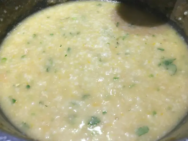 粥內含有海鮮的味道,加入菜膊粒,冬菜粒,豬油渣,蔥蔥,芫荽,簡直完美絕配