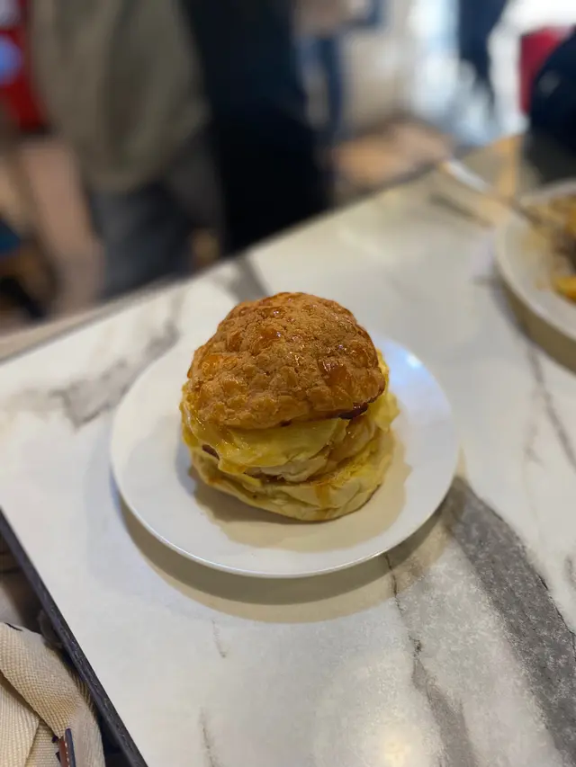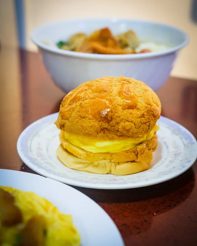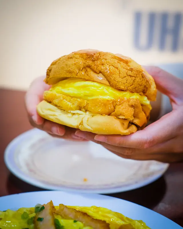 大坑這間茶記以滑蛋聞名🥚除了各式滑蛋碟頭飯外,滑蛋菠蘿油亦是餐廳的招牌🥞令我都想一試究竟😝————————————————————————店家巧妙地將菠蘿包切開三層😮上層夾着厚厚的滑蛋,下層則放了一塊鮮牛油,別具心思🤗雖然菠蘿包脆皮部分未算鬆化🤔但包身鬆軟,炒蛋嫩滑飽滿🍳牛油份量十足,香滑冰凍,鹹甜冷暖同時交融🤩層次豐富得令我非常滿足🥰豬扒份量合理🐷肉質鬆化,半熟的滑蛋光看賣相就知香滑😛配上特製蔥香豉油,鹹香濃郁,與滑蛋完美配合😇雖然味道上未算驚艷,但已達到水準之上,本人表示滿意👍🏻作為茶記經典凍檸茶的變奏版🍊凍橙茶並沒有檸茶的苦澀味道,鮮橙的果香亦未算突出🧐不過茶中淡淡的橙皮香氣頗為特別😌口感清新,未嚐過的不妨一試👌🏻———————————————————————順興的炒滑蛋名不虛傳😀香滑得來蛋味香濃,獨創的滑蛋菠蘿油更是驚喜之作🥳難怪如此受街坊和遊客愛戴👯♀️…查看更多