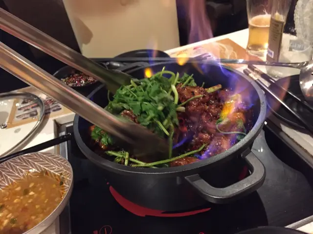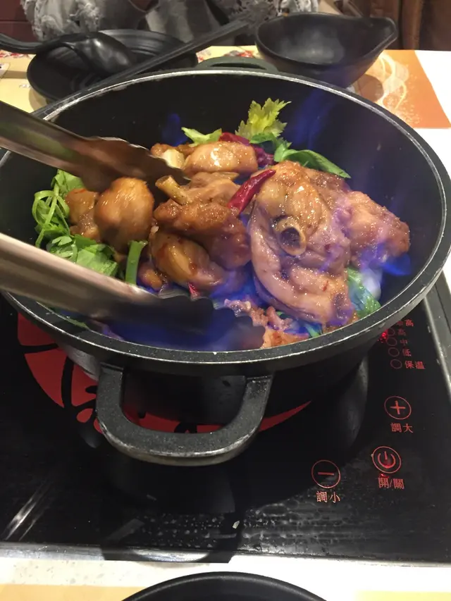 雖然未開始火鍋環節,不過店員已一早準備醬料讓我們先行調配火焰麻辣雞煲也隨之奉上,店員會在旁點火燃燒,一邊耐心炒弄,一邊等待玫瑰露燃燒殆盡,非常貼心