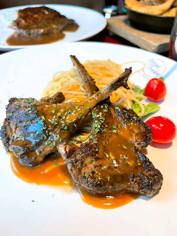 近排朋友生日,帶咗佢食個Birthday Lunch,食完順便去行下附近嘅市集,今次用咗Openrice book位仲有多88折添,幾抵食又高質!😎 店員安排我地坐窗邊4人枱位置,又可以望下街境,非常舒適,環境唔錯,靜靜地唔會好多人好嘈~ 好適合三五知己嚟傾下計飯聚一下~😙 午市套餐全部都係100元以內,幾抵食!😉1. 🐮燒紐西蘭肉眼扒 配黑松露燒汁 [選配意粉] ($98; 再有88折)雖然落單嘅時候職員無問到我想牛肉幾成熟,但牛肉上枱時切開都比較粉嫩,大約7成熟,煎得剛剛好,肉質幾腍身,好容易切開,幾香牛味又帶點肉汁,又無咩肥肉!😍👍薯蓉好香牛油&黑松露味,食落幾綿滑😋👍🏻2. 🐑炭燒香草羊扒配紅酒燒汁 [選配薯菜] ($98; 再有88折)羊扒帶點羊羶味,肉質好軟淋,肉質幾嫩,又唔會好似其他餐廳咁多肥肉,配埋紅酒燒汁,食落好夾!😝👍 🍝意粉軟硬度剛剛好,應該用了蒜蓉&橄欖油炒過,條條分明,食落好香,加埋紅酒燒汁一齊食,好香好好食,好想加意粉呀! 😛午市套餐仲包咗羅宋湯和餐飲👍羅宋湯味道正常發揮,反而餐飲凍咖啡就比較苦,要叫店員再加奶才中和到個苦味。3. 🐣咸蛋黃薯角 ($68; 再有88折)即叫即炸,外脆內軟,再加埋咸蛋黃一齊炒,令到每條薯角都沾上咸蛋黃粒粒,食到底都見到大大粒咸蛋黃碎,真材實料,好惹味,食唔停口!😛 必叫嘅邪惡之選!😈…查看更多