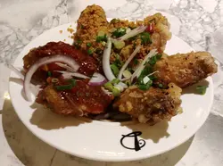 三色雞翼拼盤 : 蒜香牛油雞翼丶金蒜脆雞翼和蒜椒脆雞翼三款, 每款兩件。 每件雞翼都做得惹味而肉嫰不乾。
