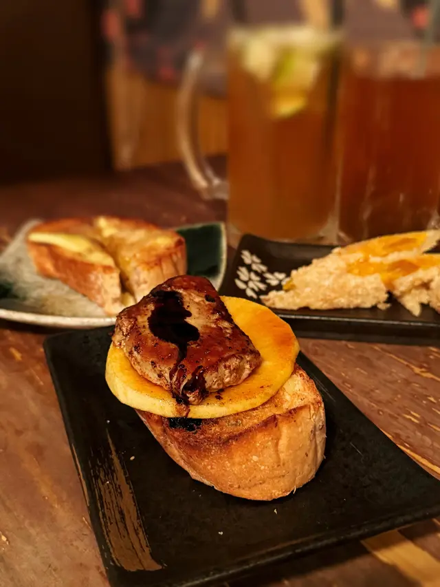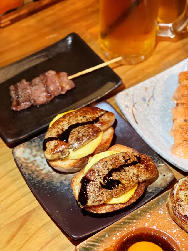 這間人氣連鎖串燒專門店其中一間分店位於旺角的威達商業大廈,主打過百款即叫即燒的串燒及燒烤食物,集合日、泰、港、川、西、新疆及台式口味,更有罕有的特色串燒。店內環境寬敞舒適,裝潢以簡約的日系木為主,如置身日本的居酒屋,適合多人聚會,建議預早訂座。鹽燒和牛牛小排 - $48/串取自牛隻前胸肋骨的部位,大理石般的油花分佈,豐富且平均,肉質細緻軟嫩,滿嘴甘甜的油脂香。焦糖青蘋果鵝肝多士 - $108/份厚度十足的鵝肝細膩滑嫩,豐腴的油脂幾近入口即化,爽脆的青蘋果、酸甜的焦糖及香脆的多士平衡油膩感。浜燒日本活北寄貝 - $58/隻肉厚而爽脆的北寄貝,鮮味全鎖在貝肉中,鮮甜無比。焦糖鰻魚芝士玉子燒 - $28/串紮實豐厚的玉子燒甜滋滋的,半溶化的芝士富奶香,又有香脆的焦糖,軟呼呼的鰻魚有著肥美豐富的油脂。汁燒免治雞肉軟骨棒(付月見) - $38/串外脆內軟的雞肉棒,雞肉及雞軟骨的比例恰到好處,保留爽脆的雞軟骨口感,蘸上順滑的月見汁更惹味。明太子雞腿肉 - $28/串雪白肉厚的雞腿嫩滑多汁,鋪滿辛香的明太子醬。豚肉節瓜波板糖(付月見) - $38/份肥瘦兼備的豬肉軟腍多汁不乾柴,夾著薄而清爽的節瓜片,平衡肉膩感,蘸上月見汁更加細膩。雞皮墨魚滑 - $38/串爽口彈牙的墨魚滑鮮香滑溜,外層有煙煙韌韌的雞肉帶點油香。川燒蒜蓉茄子 - $36/條一整條茄子軟中帶脆,多汁可口,有蒜蓉香氣的同時,又有四川的微辣。鰻魚炒飯 - $58/份粒粒分明的炒飯充滿鑊氣,塗上金黃色的雞蛋,又有肥美柔嫩的鰻魚,還有粟米及紫菜絲。冷泡白桃烏龍茶 - $18/杯冷泡烏龍茶的茶味清爽且苦澀味較低,帶淡淡的白桃香甜,甘甜不膩。…查看更多