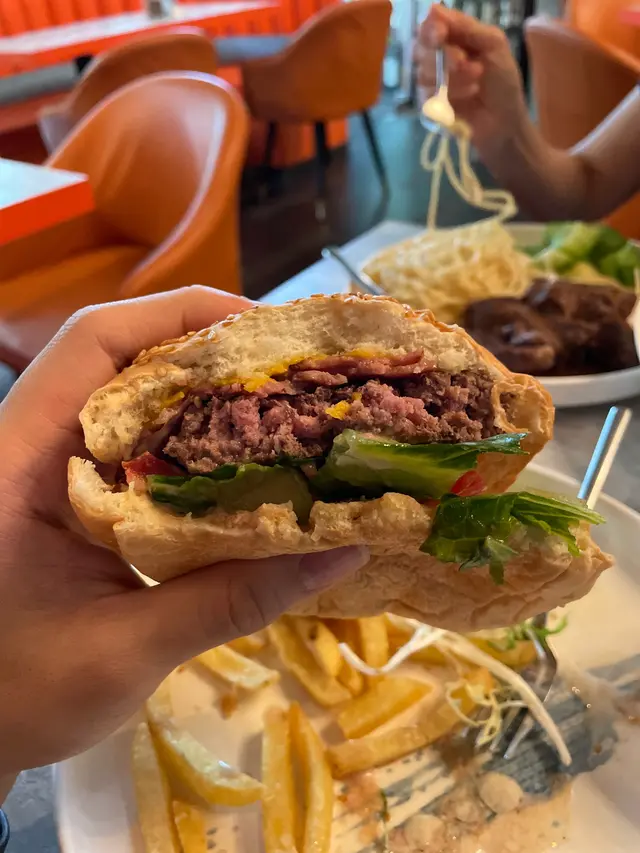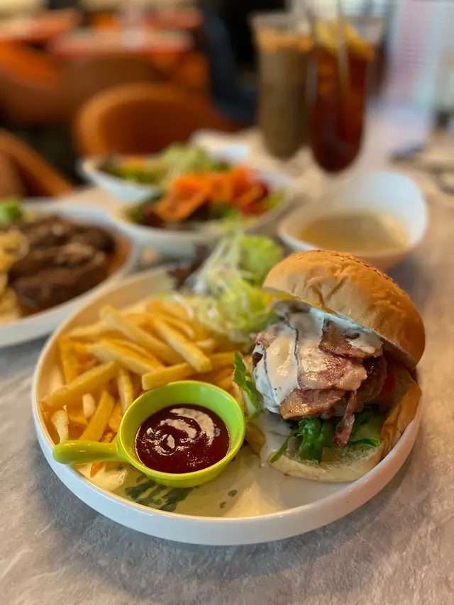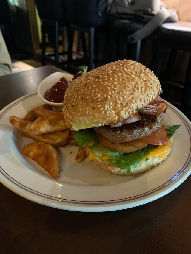 🍔😋牛肉漢堡包啲牛肉又口又唔會韌,好有份量又有口感,仲有新鮮切煙肉,足足有3片,又不會油冧冧,襯托漢堡包啱啱好! 咁嘅價錢實在是意外驚喜,值得推介!👍🏻👍🏻👍🏻伴碟嘅薯條出面脆入面有薯仔味,熱辣辣少少鹹,同漢堡包是絕配🫶🏻不過追加是日餐湯+$8(應該係椰菜花湯)味道就一般般啦,似打碎咗嘅椰菜花加少少罐頭湯.🍷🥩紅酒牛肋骨餐🍚意粉同配菜份量多,質量可接受,主打牛肋骨份量比想像中多好多!炆得很淋很入味🤩不過比較乾身,如果多啲汁就更加好😜可以襯意粉食追加+$8嘅蔬菜沙律份量多,沙律汁(balsamic vinegar比較多,所以少少酸,不過夠晒開胃,好味意外驚喜👍🏻。整體說:抵食好味😋👍🏻…查看更多
