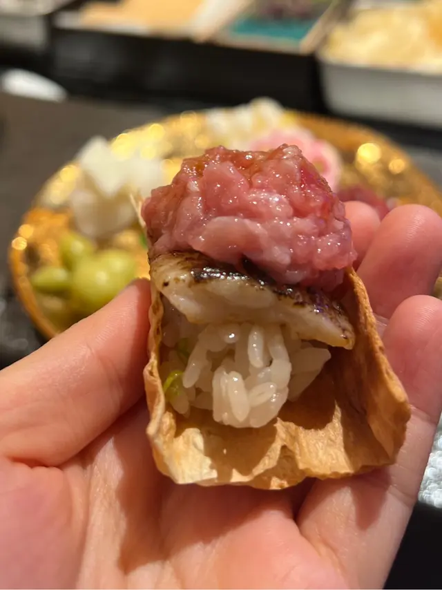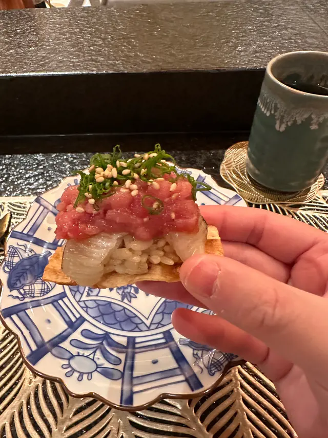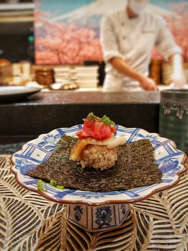 趁著米飯班主生日月就同佢食好啲,就揀左同佢食鐵板燒。位於天后嘅「宴.鐡板燒」環境開揚,餐廳設有兩種座位設計,包括可以一邊享受食物一邊欣賞到廚師的烹調手藝嘅吧枱座位及在窗邊嘅普通椅子座位😊一踏入餐廳就見到落地大玻璃,可以望到維港兩岸,飽覽維港夜景👍我地坐係吧枱及窗邊嘅位置,一邊享受開揚嘅夜景,一邊享受食物一邊睇住師傅烹調食材,師傅亦會一路介紹菜式同食法,真係大飽眼福,肚皮又滿足。宴 Dinner Lobster and Beef set $1,680/人🔹️季節前菜 水雲醋配蕃茄 | 富山縣螢光魷魚 | 黑梅貝一坐低,店家馬上端上3款前菜🥰水雲醋配蕃茄一上枱就醋香四溢,水雲醋口感順及有嚼勁,配埋蕃茄一齊食🍅,酸溜開胃👍🏻富山縣螢光魷魚 春天當造的螢光魷魚飽滿,口感爽脆,鮮甜且有海水味,配搭酸麵豉一齊食,濃烈的味道與酸麵豉搭配,清爽豐富。黑梅貝肉質爽彈,肝臟豐滿濃郁👍🏻🔹️季節刺身大池魚池魚魚味淡身但味鮮,肉質鮮嫩肥美,魚油甘香細膩。拖羅拖羅顏色粉紅,油分適中而無筋,入口即溶而魚味濃厚。🔹️燒右口魚邊身金槍魚腩手卷最底係灸燒過嘅鱈魚片,係飯上放左灸燒過嘅右口魚邊,最頂係金槍魚腩蓉😍右口魚嘅魚油滲晒落飯度,再加埋已用鼓油及washabi調味嘅金槍魚腩蓉一啖食落口,餡料飽滿,入口魚油滿瀉,滋味大滿足!食完刺身後師傅比左一碟自家醃製嘅醋漬我地送口,有涼瓜、小黃瓜、牛蒡、紅生薑、白蘿蔔等,味道新鮮甜美又清爽。 🔹️帆立貝配鮮海苔師傅選用12頭刺身級帆立貝,帆立貝厚身又細密,味道濃郁鮮甜,用牛油煎至半生熟,所以仍保留十分多汁,外脆內軟,配埋清湯海苔汁及店家自家醃製三文魚籽一齊食,鮮味更突出。 🔹️鐵板銀鱈魚魚皮煎到脆卜卜🐟,所以先食魚皮❤️銀鱈魚煎至金黃色,肉質細嫩,滑溜而不膩。 🔹️澳洲龍蝦龍蝦肉味濃郁🦞,非常飽滿,真係啖啖肉,而且肉質嫩滑彈牙,味道鮮甜。而龍蝦膏炒香後做佐料醬汁伴食,鮮味非常,惹味回甘。🔹️宮崎和牛 | 西班牙伊比利亞黑毛豬薄燒宮崎牛肉用和牛肉眼薄片包裹住蒜片、香蔥等,薄牛肉片煎至5成熟,好嫩滑軟稔,入口即化,可以配搭炸蒜片同海鹽伴食,令味道更提升。西班牙伊比利亞黑毛豬西班牙黑毛豬主要食糧為橡果,師傅選用西冷位置,肉味好濃郁,肉質嫰滑,油花呈大理石紋,堅果香味滲透肉質,甘香豐腴。 🔹️香蒜蟹肉炒飯師傅選用松葉蟹的蟹肉做這個炒飯,加熱炒香後的蟹肉讓平淡的炒飯變化出無窮的味道,鮮甜的松葉蟹蟹肉濃悠不散,米飯粒粒分明🍚,有嚼勁。 🔹️炒雜菜配秘製蒜蓉醬雜菜炒後保持爽脆口感,味道清甜,再配搭店家秘製蒜蓉醬調味,非常惹味! 🔹️自家製濃魚湯用上多款不同的鮮魚熬製,魚湯呈奶白色,味道濃郁鮮甜,仲加入左卷麩、豆腐等材料,非常美味! 🔹️焦糖多士配綠茶布甸及蕨餅焦糖多士多士沾滿糖後,於鐵板上煎到黃金香脆,之後仲會切條上碟,擺碟賣相一流,焦糖均勻脆卜卜。綠茶布甸及蕨餅布甸入口非常軟滑,綠茶味超濃厚,唔會話好重奶味,有輕微嘅蛋香,真心正!仲加埋蕨餅黑褐色柔軟Q彈的蕨餅搭配黑糖漿一起食,非常滿足呢! …查看更多