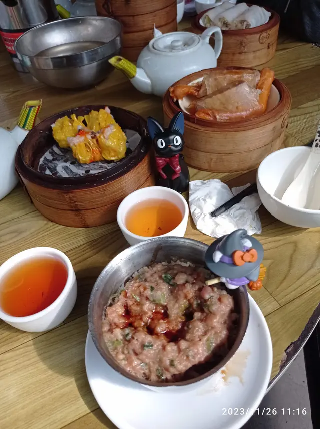 坊間傳聞牛池灣村「新龍城茶樓」將於明年一月結業。由清晨營業到中午的舊式茶樓,在目前的消費模式下,生存是非常困難。希望趕及在結業前再感受一下舊式茶樓的氣氛,品嘗老派款式點心。煎腸粉外皮金黃微脆,內裡依然滑嫩,煎得恰到好處,冇焦味,淋上少許甜豉油,香口又不太鹹和油膩。糯米包與一般糯米雞不同,糯米包用黃皮包着糯米、臘腸、香菇等餡料,蒸得剛剛好。鹹香十足,口感層次豐富。蝦餃皮夠薄但不易破穿,蝦肉爽又彈牙,啖啖蝦甜味在口中迴旋。燒賣燒賣個頭大粒,蝦肉鋪面、豬肉結實,頂部撒上蟹子,賣相吸引。味道偏向傳統風,少少油但唔會太膩。牛肉球牛肉球大粒扎實,蒸汁濃郁,底下墊着腐皮,吸收牛肉精華。入口肉香十足,仲有芫茜提味。…查看更多