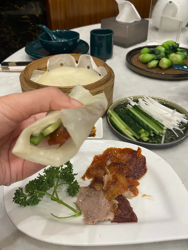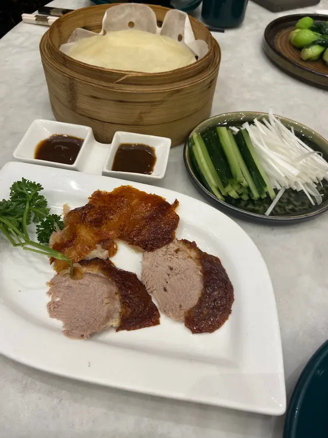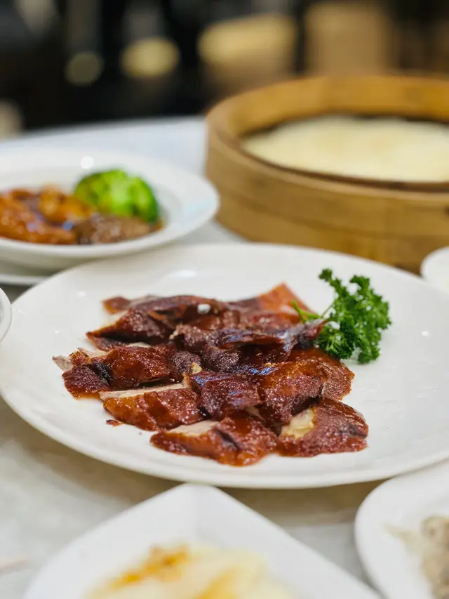 灣仔中華小館用新派煮法製作懷舊菜式,最近推出了期間限定片皮鴨2小時任食放題$498,每位包一份鮑魚花菇扣鴨掌,無限添加吃到飽美食有:片皮鴨、屋村碗仔翅、迷你臘腸卷、四季時蔬、燒味飯、泡椒鮮魚皮。每款菜式都用心製作絕不馬乎,很精緻很適合聚會打卡,而且是無限任叫任食,吃得十分滿足。鮑魚花菇扣鴨掌鴨掌肉質軟腍,鮑魚大隻很彈牙鮮甜,花菇很厚都很入味,湯汁調味香濃,很滋味片皮鴨即叫即烤,鴨皮新鮮酥脆,充滿油香,肉質鮮嫩,加上蔥、青瓜絲、醬汁包著皮一起吃更有風味,十分香口屋村碗仔翅有木耳絲、粉絲、荀絲、肉絲,很足料,口感十足迷你臘腸卷一咬開臘腸油香滿滿,不會有太多肥膏,非常香口美味燒味飯叉燒切雞飯,雞肉嫩滑,雞味香濃。叉燒肥瘦適中,燒得焦香,蜜汁香濃,肉味濃郁,十分推薦泡椒鮮魚皮冷盤魚皮很新鮮爽彈,泡椒味很突出,辣辣的很惹味,令人吃個不停四季時蔬蒜蓉炒白菜很爽脆鮮味…查看更多