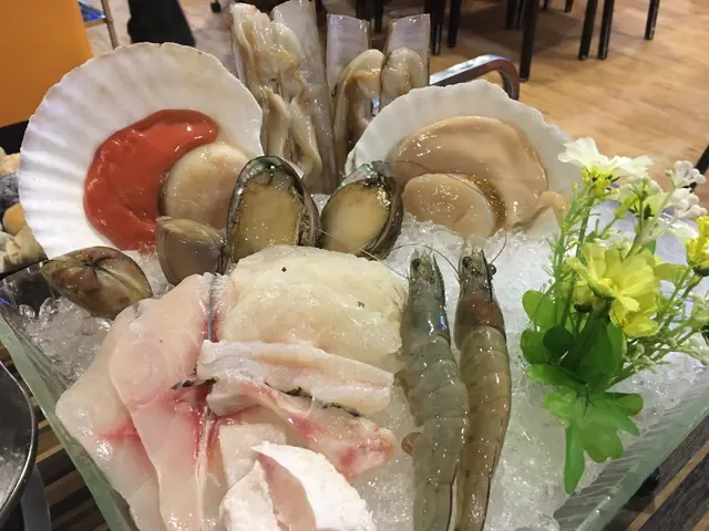 到了火鍋主打的生猛海鮮拼盤,有鮑魚及元貝等,同樣新鮮甜美