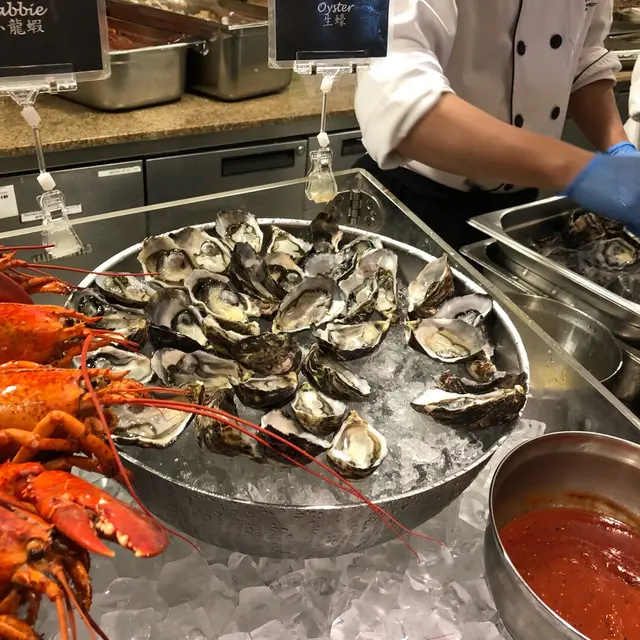 我發覺每一區都梗有一間”表表姐”嘅酒店, 就好似東涌咁, 提起高質buffet, 實係唸起SkyCity Marriott嘅Sky Bistro, 好方便地喺東涌地鐵站有Free Shuttle, 仲要係每半個鐘一班嘅大車🚌, li期做緊”Seafood Fiesta”(去到9月), 好吸引bor.>6點入場, 估唔到樓底高地方大, 有好幾張超高privacy嘅圓型”包廂”, 目測都已reserved. 我地坐近窗口, 枱與枱之間夠闊非常Cozy. >睇下有咩海鮮🦞🦐🦀🐟: 超正有波士頓龍蝦, 藍青口, 長腳蟹, 海蝦, 瀨尿蝦, 翡翠螺, 小龍蝦, 生蠔🤤🤤🤤. 身為生蠔控嘅我一口氣呑下半打新鮮生蠔, 來自紐西蘭嘅生蠔非常creamy, 旁邊就係沖乾淨生蠔嘅counter, 0蠔殻碎juicy. 海蝦, 小龍蝦, 勁易離殻又多肉; 貼心預備鉸剪for長腳蟹同瀨尿蝦, 好易handle啖啖肉; 波士頓龍蝦🦞食左足足一整隻, 一叉就起嘅龍蝦肉實在太新鮮了, 真心食兩round已值回票價👍🏻.>醎點有即整麵Station, 各款海鮮, Rib Eye, 黃金蝦encore之選.>芝士Cold Cut配cracker + 火腿>另一亮點係印度香米配咖哩, 由一位印度藉廚師主理, 最特別係有個好深嘅烤爐整嘅Naam-印度薄餅, Dip咖哩一流👍🏻.>洛神花燉雪梨🍐勁滋潤, 健康桃膠杞子糖水好足料, 燉蛋反為頓時變得不太特別, 細細粒brownie都嚐到walnut口感, 除此之外li度仲有小朋友完全唔怕悶親之朱古力噴泉.jellybelly糖. 最後不能錯過梗係HaagenDazs柚子香橙味雪糕la😍.…查看更多