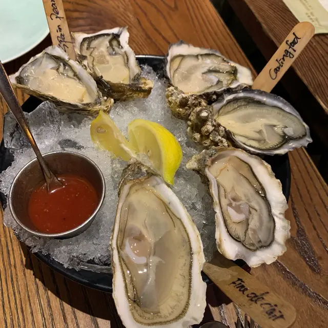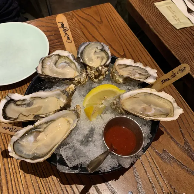 餐廳:Cafe 2 Oyster n Grill地點:西環西營盤菜式:西餐、生蠔餐牌:生蠔、湯、沙律、Side Dishes、前菜、意粉意大利飯、比薩、烤海鮮、海鮮、牛扒、豬、甜品等。先黎半打生蠔開開胃。愛爾蘭石蠔 Irish Rock $29 另加一愛爾蘭石蠔比較Mineral,味道非常鹹香,好有海水味。法國聖馬田生蠔 St Martin $29 另加一法國聖馬田生蠔較為creamy,入口滑溜,好食。西班牙銀堡生蠔Castillo $39 另加一呢個西班牙銀堡生蠔最正,好肥美,入口滑溜有口感,正!Barton & Guestier Sparkling Blanc de Blanc (France) Champagne Style $48 另加一呢杯酒d泡泡好靚,望住泡泡上升好療癒。飲落好易入口,好飲wor。檸汁醃八爪魚 $148 另加一慢煮八爪魚多片加有檸檬汁,口感一流,有咬口又唔會太硬。下底係撈有莎莎醬,歐芹,甜黑醋同滑溜牛油果既沙律,好開胃。慢煮和牛薄片伴香醋汁 $158 另加一大大隻碟舖滿薄薄嫩口和牛薄片,面頭加滿鹹香芝士片同新鮮火箭菜,加有香甜黑醋,帶黎多重口感,味道又鹹又甜,好美味。炭燒海鮮拼盤 $398 另加一炭燒海鮮拼盤好大盤用木板上枱,大大隻連殼連頭有膏大蝦,一大條脆皮嫩肉魚柳,仲有三隻嫩口鮮美厚肉加拿大帶子,下底有好多有嚼勁八爪魚片同爽口啖啖肉螺肉,伴有新鮮沙律菜。醬汁有泰式醬汁,少少辣好惹味,仲有一件檸檬角。總括而言,海鮮非常新鮮,所有海鮮都食得出鮮味,推介。炭燒美國安格斯西冷扒 $298 另加一炭燒美國安格斯西冷扒足有12安士,超大件,連少少筋,有咬口,叫左medium rare,中間帶少少粉紅色,都好嫩口,牛味好濃。伴有蘑菇燒汁,真係有蘑菇粒,唔太鹹。伴有兩大件番茄同翠玉瓜,仲有熱辣辣炸起粗身薯條。芒果沙冰 $65 另加一芒果沙冰大大杯,面頭仲加上忌廉,飲落係滑溜天然芒果味,唔太甜。朱古力心太軟伴雲呢拿雪糕 $88 另加一大大件脆皮流心朱古力蛋糕灑上少少糖霜,配一大球雲呢拿雪糕同一條朱古力蛋捲,仲有一粒新鮮士多啤梨同三粒藍莓。暖暖地既流心朱古力蛋糕配冰凍融緊既雲呢拿雪糕簡直係絕配,仲有朱古力曲奇碎加添口感,呢度將呢道甜品整得好好。鐵板朱古力布朗尼伴雲呢拿雪糕 $78 另加一我第一次食呢款熱辣辣鐵板上既朱古力布朗尼,服務員係你面前倒朱古力醬,嗰個色香味簡直令你視覺聽覺同味覺都大大滿足。首先聞到好香朱古力味,然後入口係熱辣辣布朗尼配融緊既雲呢拿雪糕加流緊既朱古力醬,仲有鐵板上既朱古力曲奇碎,口感味覺同比各有千秋。意大利芝士餅配雪糕及水果裝飾 $68 另加一好大件意大利芝士餅,口感輕盈滑溜唔太膩,酒味同朱古力唔太濃,忌廉感好強。我第一次配雲呢拿雪糕食,原來都好好食,好夾。伴有朱古力味蛋捲一條,一粒新鮮士多啤梨同三粒藍莓。加有少少草莓醬添少少新鮮感。今餐食物質素好高,由生蠔到前菜主菜甜品都好正,份量大份。外籍服務員係西人,服務態度非常好。餐廳裝修好有歐洲氣氛,播放輕鬆音樂。…查看更多