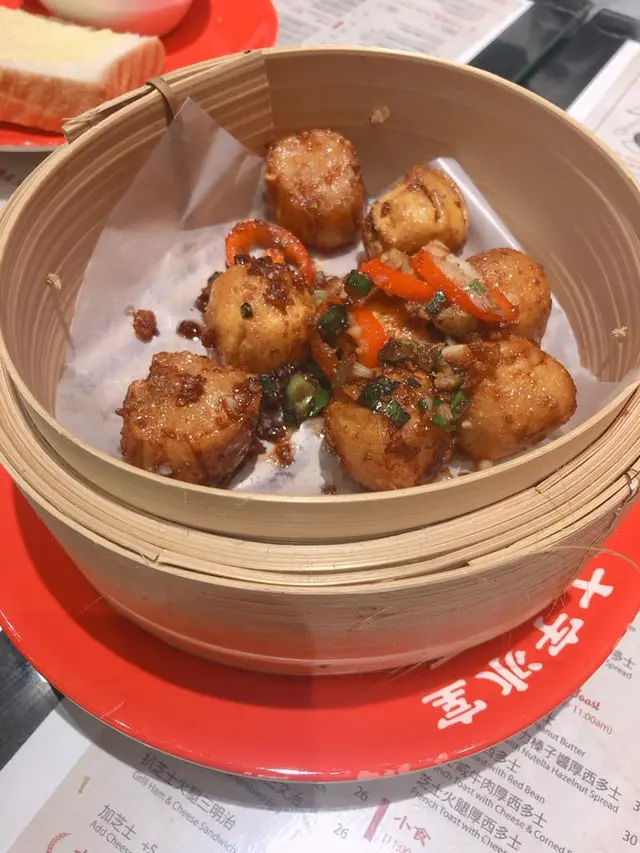 籠仔椒鹽燒賣 $28一個蒸籠入邊放着八粒椒鹽燒賣,籠仔賣相吸引!帶點fushion!入面放左整到有避風塘嘅味道,椒鹽燒賣,精華盡在紅椒,不過燒賣炸過但有少少油,作為一個小食黎講其實賣相,同味道真係好唔錯,惹味十足。原本想叫黑松露櫻花蝦炒飯,結果因為太好賣,已經賣哂,所以點了...