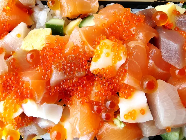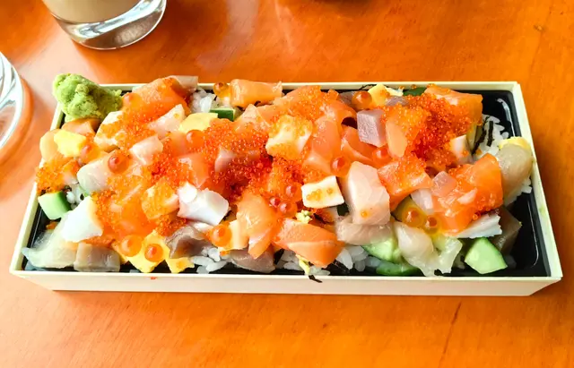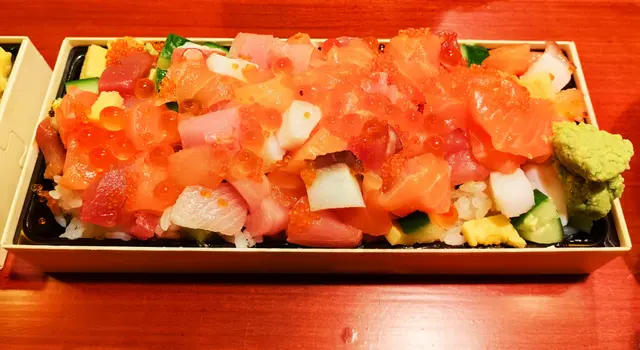 粒粒刺身丼 - 本人第一次購買外賣,單看長形盒子以為份量不會多,但打開進食時,發現珍珠米被壓得實,鬆開後份量多,絕對夠飽肚。三文魚和吞拿魚等刺身軟滑,完全不凍硬,肉質新鮮,色澤亮麗。在外賣 8 折之下,價錢抵,質素穩定,不會將貨就價。【推介之選】❤❤❤