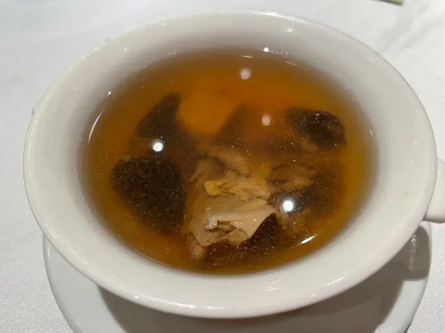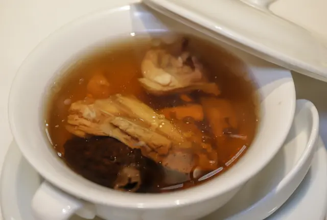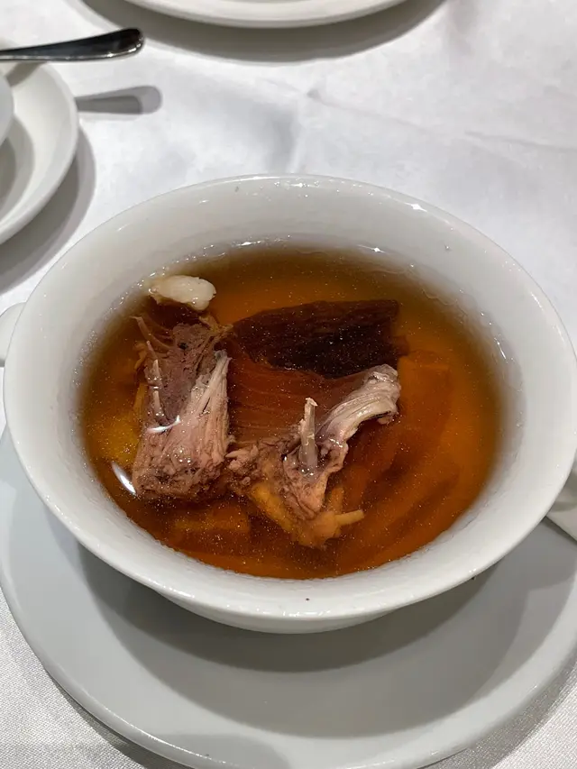 粵軒是六國酒店內的中菜館,有時候週末會跟家人到這裡飲茶吃點心。最近發現粵軒推出黯然銷魂飯套餐,在宣傳的相片中看到黯然銷魂飯的叉燒超級大塊非常吸引就立刻訂座而且說明要吃黯然銷魂飯套餐。❈ 黯然銷魂飯套餐 HK$388(兩位起)✦羊肚菌螺頭燉水鴨 - 這個中湯味道清甜,好好喝。✦煙燻鴨(半隻) - 煙燻味濃,肉質嫩滑,非常入味。✦黑皮雞樅炒蝦球 - 蝦球炒至清爽脆口,蜜豆鮮綠美味。✦黯然銷魂飯 - 將脆邊太陽蛋的蛋汁和燒豬油與熱飯拌勻,然後與叉燒一起吃。兩塊巨大的半肥瘦叉燒,肉嫩帶點油脂,表面充滿着焦香的蜜糖漿,白飯粒粒分明帶點嚼勁,與乾蔥粒在口中散發香氣。✦黃橋燒餅和大紅袍茶皇糕 - 燒餅是紅豆餡。大紅袍茶皇糕用了大紅袍茶,大菜和桂花煮,味道清甜,有消膩的作用。註:黯然銷魂飯套餐推廣期至2024年4月14日。 …查看更多