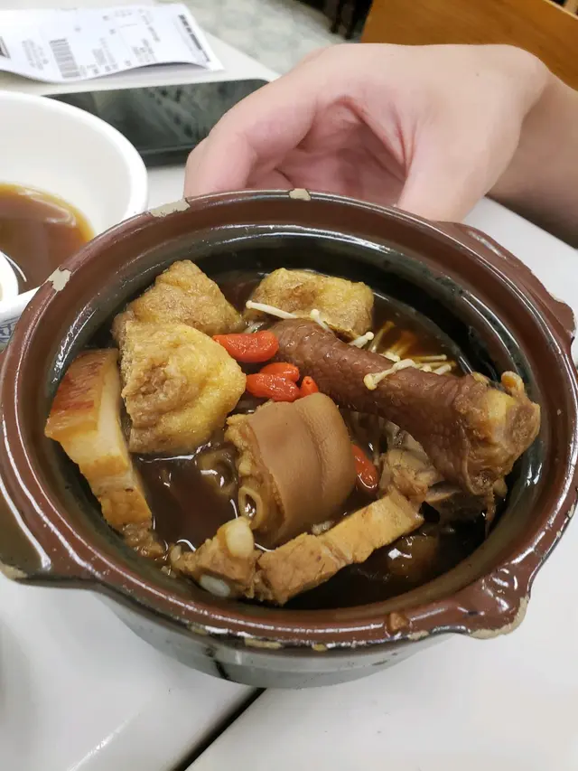 同朋友去開深水埗買唱片,朋友介紹去食馬來西亞菜,好久無食馬來菜,大約晚上七點左右到,唔使等位,餐廳入面有七至八個客人,餐廳裝修有70年代馬來西亞風格,地方整潔乾淨。一字骨肉骨茶 $ 88 (客人有點肉骨茶可以無限添飲)肉骨茶用沙煲上,有7至8粒杞子,一字骨有三件都好大舊,一字骨煲得好淋,唔黐牙,肉骨茶有藥材味,個人口味,藥材唔夠重,湯色深啡色(馬來煮法)。無限添飲肉骨茶是侍應用茶煲添加到客人碗內,比一字骨沙煲上還要淡一些味道!黑豉油帶甜味配蒜蓉及辣椒碎點一字肉食更好味。淨黃薑飯 $18一碗飯粒粒分明,好有黃薑味。馬拉沙爹串燒 6串 $108串燒,豬、牛、雞每款兩串,燒時間剛剛好,肉質嫩唔乾,沙嗲醬帶甜有好味。招牌老鼠粉 $ 68其實係銀針粉,銀針粉彈牙,有兩三塊魚片,及兩三塊半肥瘦豬肉片再配合醬汁及肉碎、豬油渣、菜譜、蔥花攪拌銀針粉,更有口感及野味。檸檬薏米水(熱$32,凍$ 26)正常味道,不太甜,不太酸,薏米偏小。…查看更多