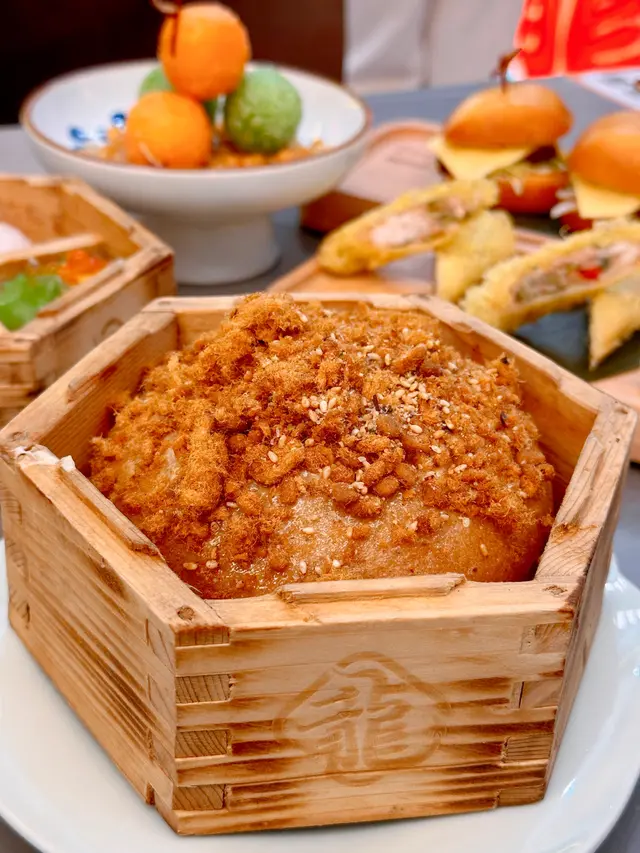 琴日同朋友們喺灣仔完咗活動肚餓想搵嘢食,就揀咗佢去碰吓運氣,原來佢收12點!平時午餐嘅時間好多人排隊,唔會食到。門面裝修已經好靚,日頭行過去嘅時候冇咁明顯。入面亦有港式燈牌嘅元素。佢fusion嘅地方係仲有特飲或者酒精飲品可以選擇。我哋第一個嗌咗鮮蝦腐皮卷,大家食嘅時候要小心因為係即刻炸,唔會好油,腐皮亦都好脆。我哋嗌咗四色餃嘅款,普通蝦餃皮薄餡靚,松露餃適合素食人士食用,魚子蟹肉餃好好味,入面都食到蝦同蟹肉嘅香,留意橙色嗰隻應該係酸菜魚蝦餃,所以會有啲辣。肉鬆馬拉糕好特別,平時一般食嘅馬拉糕都淨係甜嘅,加咗肉鬆會係鹹食嘅馬拉糕,店員好細心已經幫我哋切好可以即刻返嚟食,而且佢平時傳統酒樓馬拉糕嘅咁甜好適合香港人嘅最高評價!叉燒包都算幾大個,皮薄餡靚,叉燒包嘅皮唔會好甜,叉燒汁就唔算好多。我哋食完都唔知個皮其實係乜嘢做㗎,但係佢嘅做法好特別,因為鹹香味好重,作為香港人好鍾意朋友們一致都好鍾意食。呢個芋角酥都係新鮮炸起,放落口要小心啲。炸皮唔會好厚,餡料同埋皮嘅比例都啱啱好。我哋估唔到鰻魚飯上面都會有金箔