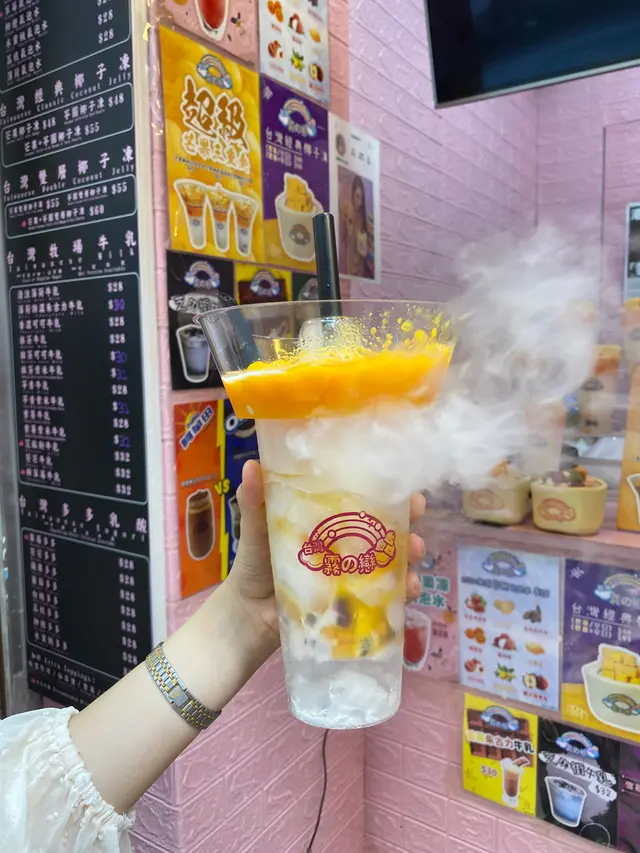 見到厚福街呢間飲品店,又有少少肚餓口渴,就去睇吓啱唔啱飲~一望就比佢個超級芒果三重奏系列吸引咗,芒椰呢個配搭好有童年嘅感覺!🤣我就叫咗個芒果椰奶x小芋圓 ($42)😆飲品一出嚟我都好驚訝,因為佢識噴煙!🤣杯邊有啲窿窿,啲煙就喺嗰度出嚟🤣 (可惜影相影得唔係太清楚,要用心睇🥲)打卡真係一流🤣影咗一輪相之後就可以飲喇~上面個兜兜都裝住唔少芒果同埋椰汁,可以用隻小匙羹𢳂嚟食~椰汁唔會太甜,好香椰味,而芋圓細細粒,好易咬,都好煙韌~飲咗幾啖就將成兜芒果撥哂落去杯飲品度😆芒果、椰汁同芋圓原來都好夾😆飲品個噴煙效果好有驚喜,令我下次都想試吓其他飲品係咪都咁有驚喜😂…查看更多
