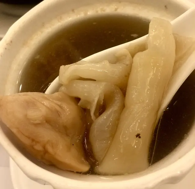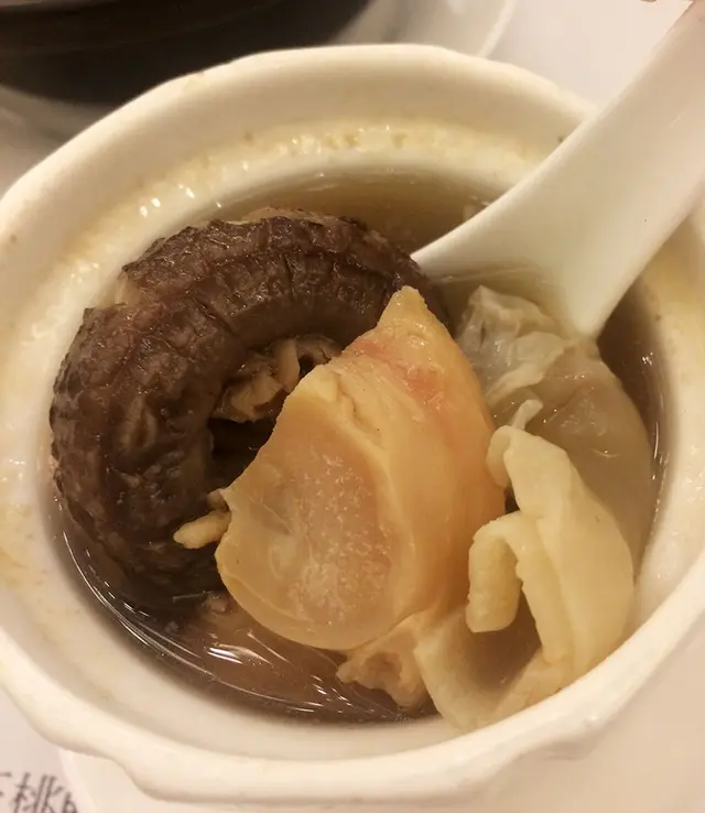 放工出開時代廣場行街,想揾個舒服啲嘅地方食晚飯,最後決定選呢間玉桃軒,可以嘆住熱茶慢慢食。一上到嚟門口夠見到佢嘅佈置,真係幾靚。 跟住映入眼簾嘅就係佢嘅燉湯啦。 一行到門口便已經有很好嘅招待,坐咗喺中間位。佢有很多份menu,實在好多選擇。因為我哋得兩個人, 所以即使見到佢嘅片皮鴨做緊特價, 但都怕食唔曬所以冇叫。食到中途見隔離枱有叫,真的很大碟很吸引。我及朋友人少少,所以叫咗一碟肉同一碟菜,再加上每人一個燉湯, 呢個晚餐超豐富, 好滿足。首先上檯嘅係我們十分之期待的鎮江香醋排骨煲,佢個賣上十分之吸引,而且佢嘅調味很野味,為咗這個煲,明知會食到很飽我們也還是叫了一碗飯。他雖然是排骨,但也是啖啖肉,最後這煲食到一件不剩, 連配料也吃光了。跟著要說的便是他的一道竹笙鼎湖上素,他的芡也調教得很不錯,配上他幾款不同的 菇,滿滿的一大碟。最後也是最重點的,便是花膠螺頭燉北菰湯!每一盅裏面也有一大塊花膠,螺頭不但只很肥美,也很鮮美。這些材料配合起來一起燉,搭配極佳,湯的味道清甜及濃郁,令人很是回味。除了食物質素外,更值得一提嘅係佢哋嘅服務態度,很有禮貌。 …查看更多