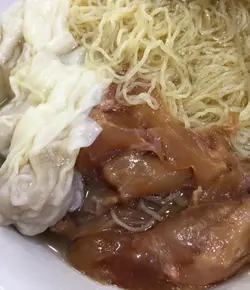 處理得非常好,不會有怪味,配上大地魚湯底,米粉又吸湯,灑上韮黃,香味倍增!蝦子撈麵