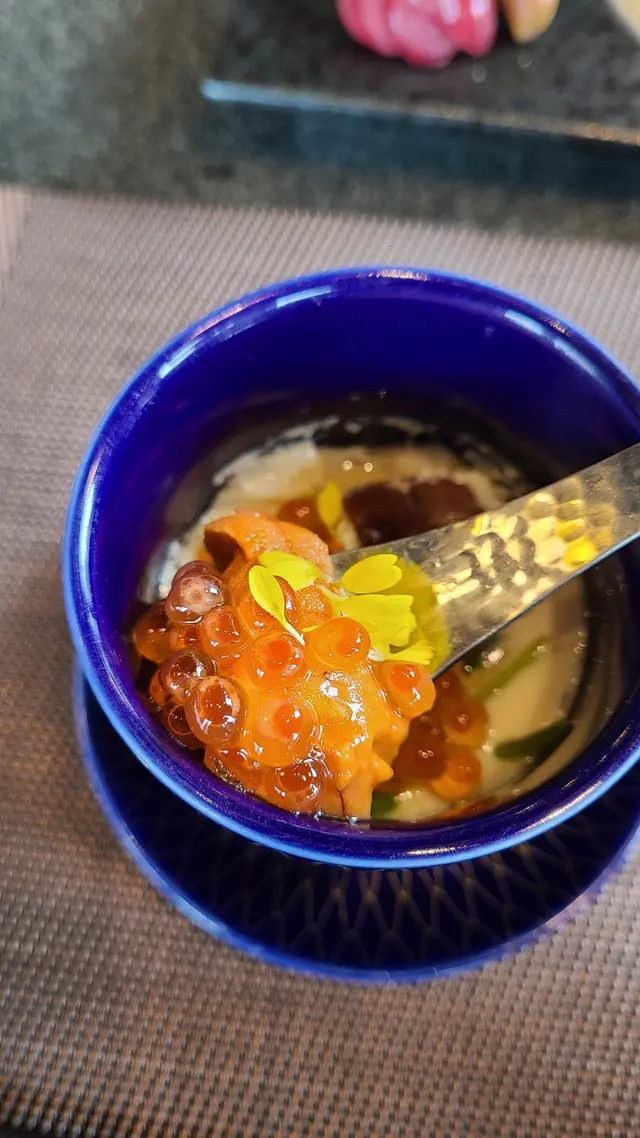 芝麻醬沙律開胃口,用芝麻醬調味,蔬菜爽口味噌湯即場煮熱,鹹香適中,豆皮軟腍,好暖胃茶碗蒸有魚子、蜆肉、昆布湯粉、香菇,口感豐富,蛋如絲絨般順滑刺身期待已久的刺身,有六款,每款兩片,擺盤工整拖羅 😍 紋理層次分明,很新鮮目鯛 很鮮嫩,口感堅實金目鯛 色澤通透,肉質厚實而有彈性,外皮較煙靭池魚王 脂香均勻滲出鮮帶子 很肥大,鮮味濃厚赤蝦 肉質鮮甜原來有配飯 真的好飽🥹飲品 巨峰乳酸清爽解膩…查看更多