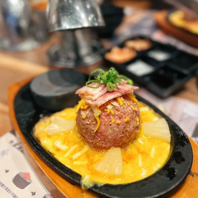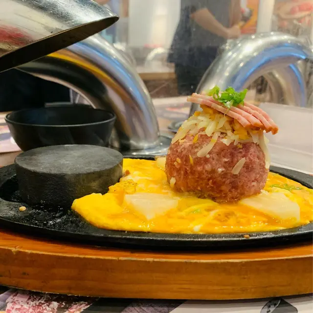 尖沙嘴厚福街食肆林立,競爭激烈下福岡漢堡扒一直都是排隊熱店,這次就來試試到底有什麼過人之處🍴每個人的座位上都配有抽風,另外有需要的話也可取圍裙使用。▫️兩人套餐 (ver.4)餐廳使用QR code下單,選擇困難的我們就直接點了兩人套餐。點餐後先送上醬料盤、味噌湯和清新爽脆的椰菜絲沙律佐胡麻醬🔸芝士蛋蒜和牛漢堡扒鐵板很快送上~第一次來吃,所以店員都有指導一下料理方法,先用小鐵鏟取部分漢堡平舖在熱石上再輕輕壓扁🤏🏼因為熱石超高溫的關係要每3秒翻轉一次,將和牛漢堡豐腴的油脂完全迫岀,喜歡焦香一點的可以多煎幾下,外焦內嫩仍保持 Juicy 口感!吃到一半的時候店員也有主動來更換熱石,自己動手料理感覺蠻有趣的👩🏻🍳 而且也很好上手🔹菠蘿煙肉和牛漢堡扒這款同樣扎實!多了菠蘿和煙肉的配料,吃法上帶來一點變化,吃完漢堡再吃片烤菠蘿很解膩。漢堡扒本身惹味多汁,再佐以鹹香迷人的芝士,所以我們幾乎沒用上醬料盤去調味🔸芝士泡豚丼套餐還有一個丼飯,超大一碗二人分享剛剛好。裡面堆滿了泡菜和豚肉片,加上拉絲的半溶芝士非常邪惡.ᐟ.ᐟ.ᐟ 🔹飲品附兩罐罐裝飲品,養生的我們就選了無糖的烏龍茶和樽裝水 💧 …查看更多