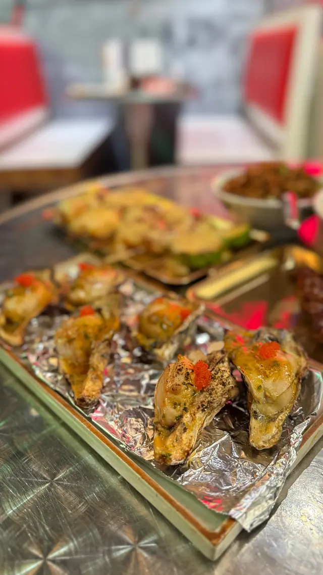 銅鑼灣太多美食啦,呢間串燒店bookmark咗好耐,呢晚終於嚟食啦😎 串燒店喺世貿中心對面,好啱行完街去食飯 。維他奶芝士系列呢個係餐廳獨有嘅招牌菜,用維他奶同芝士整成醬,味道都幾特別,而且芝士有超勁嘅拉絲效果,真係望到都覺得好正🧀 今次試咗呢個系列嘅幾款串燒,最鍾意都係芝士年糕嘅配搭,外層同埋裏面嘅芝士係兩種不同嘅味道👅♦️維他奶芝士免治雞肉條♦️維他奶芝士翠玉瓜♦️維他奶芝士獅子狗♦️維他奶芝士豆卜♦️維他奶芝士小甜薯♦️維他奶芝士芝士年糕惹味辣雞腎幾爽口,調味帶少少香辣🐥鹽燒牛舌心幾推介呢個牛舌心,入口軟腍又Juicy⭐️老銅牛叉燒第一次食用牛整嘅叉燒,比起豬叉燒有咬口,但食落口唔會好韌🐮蒜蓉燒蠔有三款口味可以選擇,我哋揀咗最Classic嘅蒜蓉味,蠔肉肥美🦪和牛炒飯炒得夠乾身,炒到粒粒分明,入面仲有啲和牛碎🍚 唔L同沙嗲牛麵個名令到我好好奇究竟呢度嘅沙嗲牛麵會有幾特別,牛肉冇過分醃製,每一片都食到肉嘅紋理😗 另外個沙嗲非常香花生味。飲品♦️維他奶奶凍紅豆冰紅豆煲得好腍,唔用椰奶,用上維他奶都幾好味🤤♦️維他奶奶凍黑芝麻冰黑芝麻味道濃郁,配埋用維他奶製成嘅奶凍,可以增加口感。呢間港式串燒店好有特色,好鍾意呢種fusion嘅新派感覺 。餐廳仲有唔少霓虹燈、小巴牌同麻雀嘅裝飾,將香港最標誌性嘅嘢放晒出嚟,邊食邊打卡就啱晒📸…查看更多