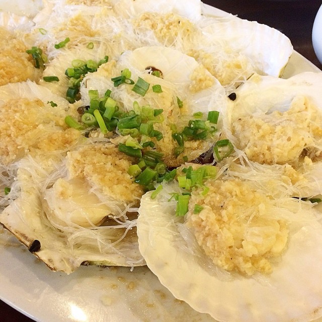 「豉椒炒蟶子」爽口彈牙,火喉控制剛好肉質不會韌,青椒亦青甜「果皮蒸鮑魚」超級大隻,豉油如果再咸一點會更好「蒜蓉粉絲蒸扇貝」蒜蓉粉絲超級好吃