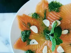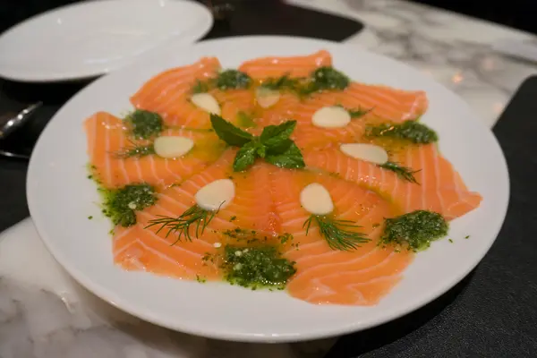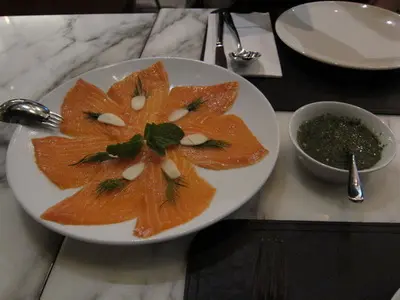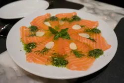 先來個我最愛的前菜-薄切三文魚配泰式辣汁-$118這個泰式辣汁是平時吃生蝦那個,伴三文魚來吃,可以讓不能吃蝦的朋友解一解饞。三文魚新鮮美味,配上辣汁更醒胃。軟殻蟹墨魚汁麵-$148軟殻蟹size不大不小,足夠2-3人share。炸得頗香脆,肉也能保持juicy。但略嫌炒意粉太油,而且蒜味太重,完全遮蓋了墨汁意粉的原來味道。最期待的甜品環節到了~ 左揀右㨂,還是選了signature dessrt 椰子千層蛋糕-$68/$78?(價錢忘了)很久没吃了,仍能保持清甜的味道,椰子肉也爽口鮮甜。但椰子肉的分量好像少了,吃到有點膩。這件cake還是不能一人獨吞,要share才可~XD由入座、落單、斟水到埋單,店員態度愛理不理,叫幾次才回應。問題是餐廳並不忙碌⋯⋯除了食物質素,服務也是吸引人光臨的原因。以這種態度待客,難怪現在已没了等位的人群。…查看更多