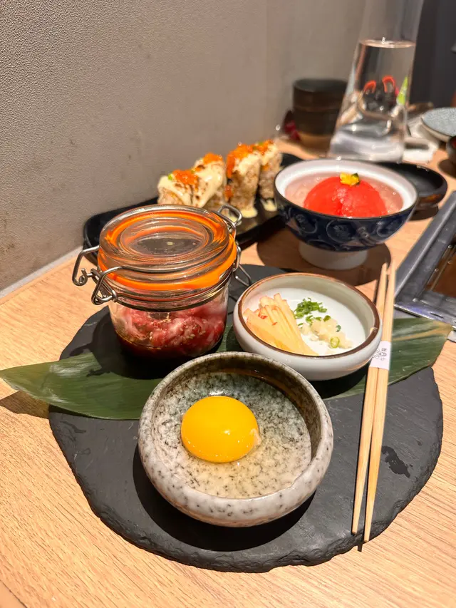牛魔燒肉質素幾高 有多款和牛食 擺盤又打卡 服務仲吾錯👏🏼🐮M6和牛牛板腱 $198先黎賣相精緻📸油花相當均勻 有啲蒜蓉調下味 燒完好香 一大片 幾juicy 肉味濃👍🏻 👅香蔥薄切牛舌 $82厚度岩岩好 輕輕一燒就食得 彈牙又爽口🐥鳥肶肉醬油 $92估吾到烤雞肉可以咁嫩滑🍎蘋果木煙燻松露和牛他他 $158一打開真系有啲煙出🤪之後將蛋 蔥花 蒜蓉 蘋果絲撈埋落去一齊食燒肉汁加上松露醬 超級好味🏅同時蘋果絲又幾fresh balance返和牛他他肉質嫩滑 完全冇筋🍅梅酒蕃茄 $38好清爽 酒味吾算好濃🧀芝士吉列鳥肶肉飯卷 $88面頭鋪左火炙過既芝士 好香仲有啲三文魚籽 鹹鹹鮮鮮 味道更豐富入面既炸雞幾大舊 即使擺左一陣先食都仲好脆👍🏻配埋蜜糖芥末醬 冇得輸😆🥬野菜組合 $88有南瓜 蕃薯 翠玉瓜 粟米餐廳會準備個香草牛油 放埋一齊燒 幾正😊🍹金橘梳打$48🍸鳳梨梳打 $48💭烤肉質素吾錯 合錢都合理 餐廳位置系K11附近 好方便 而家happy hour啤酒又有discount 岩曬同fd子聚腳…Read More