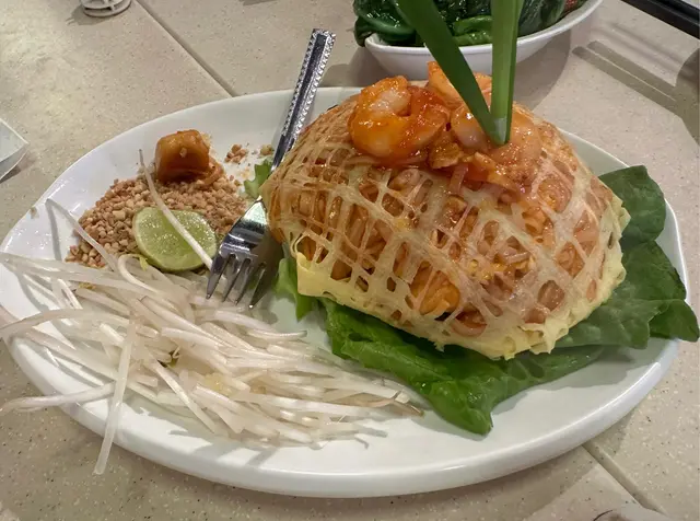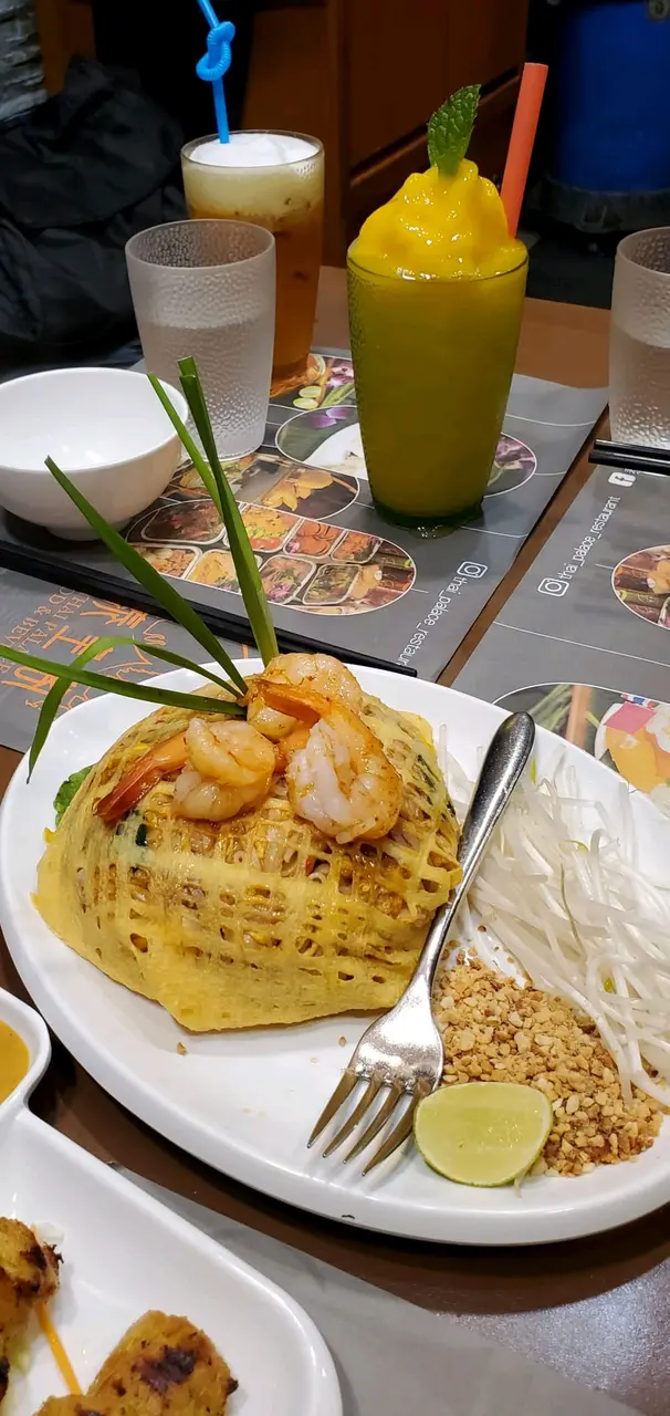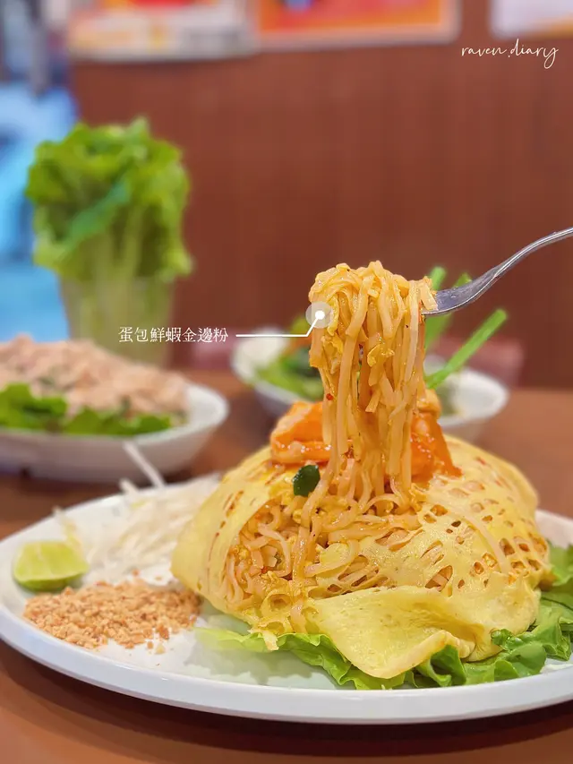 放工後與朋友相約到九龍城附近影下相,一賞老香港嘅景色。諗住搭車出番去食飯,望到#泰皇閣泰國菜館 ,都系離地鐵站一個街口就到,朋友話九龍城嘅泰菜相當出名,咁不如一嚐其特式。702• 泰皇閣拼盤 $170.0呢個拼盤好豐富,擺設真係好靚,足足有三層咁高,🇹🇭頂層蝦片脆卜卜。🇹🇭中層鳳爪沙律成個好新鮮,鳳爪爽彈鮮甜唔酸,夾着生菜番茄,酸酸甜惹味醒胃。🇹🇭低層(蝦餅,魚餅,素菜春卷,雞翼),炸蝦餅較韌,魚餅彈牙,素春卷皮薄且夠脆,各類炸物食起來很香口!!301•蛋包鮮蝦金邊粉 $80.0製作頗有心思, 賣相吸引,除左放了3隻頗大的蝦🦐。金邊粉乾身,條條分明,不會黏在一起。加點青檸或花生🥜碎,味道甜中帶酸,值得一試!!212-馬拉盞炒芥蘭 $70.0 味道十足,芥蘭保持著爽脆, 菜葉嫩滑, 鹹香中透出絲絲鑊氣, 相當不錯!127 - 椰汁西米糕拼千層糕充滿椰奶香的椰汁西米糕,千層糕又暖笠笠,是不錯的小吃拼盤。102• 香茅青檸茶 $32.0114- 椰汁珍多冰 $32.0餐飲除了普通飲品之外,更有不少泰式特飲,每款都不錯,各有特色。…查看更多