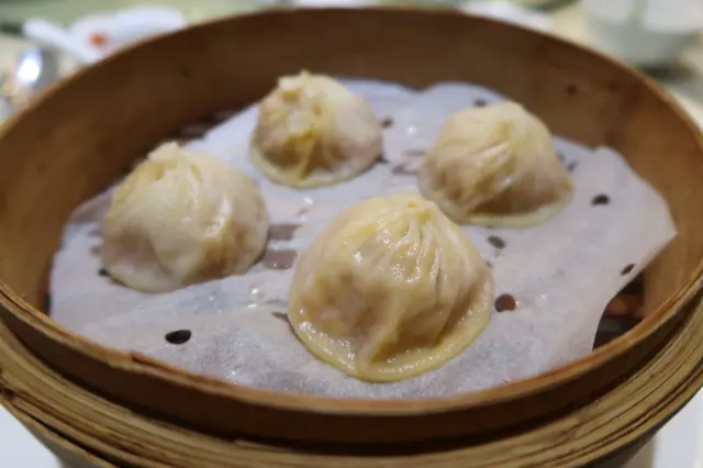 雖然今年大閘蟹遲了抵港,但仍不減我對大閘蟹既熱情!今年再來到東海,已經唔記得連續第幾年了…XD喜歡其「大閘蟹 • 珍嚐套餐」,除了食到原隻大閘蟹之外,仲可以食到幾款蟹粉菜式,滿是滋味!先是蟹粉小籠包,以蒸籠奉上..熱辣辣上桌~外皮厚度剛好,不會太薄而一夾就破失去湯汁,也不太厚影響口感~咬入口饀料十足 ,濃郁的湯汁流出,鮮甜得來帶甘香~生拆蟹粉蒜茸包,真係兩塊唔夠喉,想食多幾塊~有一小窩生拆蟹粉除自己喜歡加在蒜茸包上,蟹粉配上脆脆的蒜茸包,實在是香口得來又惹味~個人建議在每咬一口前加上一匙蟹粉,這樣可每口都是滋味同時又不會影響蒜茸包的脆度~金黃色的蟹膏加上絲絲蟹肉,看見已令人流口水,蟹油滲進蒜茸包,入口啖啖蟹鮮,令人不禁一口接一口,所以兩塊蒜茸包真係唔夠喉..XD蟲草花北菇燉花膠湯,傳來陣陣香菇的香氣~用料也挺足!看見有北菇、花膠,正好在這秋冬滋潤一下~味道清甜帶菇香,北菇厚身有口感,也燉得軟稔~來到戲肉..大閘蟹!!!套餐包每人兩隻大閘蟹,每隻約4.5-5兩,實行可慢慢拆~雖然今年的大閘蟹不夠肥美,但蟹膏依然滿滿甘香,有點掛口,在口腔留有餘香~蟹肉實淨鮮甜,沾點陳醋,鮮味更出~時蔬 及 海皇湯手打烏冬薑茶湯圓,本身味道偏淡,配上甜甜的芝麻湯圓中和一下剛好!薑味十足,帶點辣正好驅寒,飲後很暖胃~一次過嘗到多道菜式,實在能滿足蟹癡的胃 ! 價錢$398/每位,值得一食!而且多人同行光顧,價錢越抵,所以建議大家約親友組團去食!…查看更多