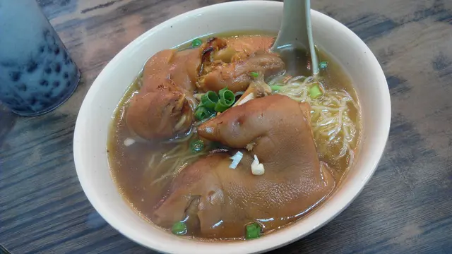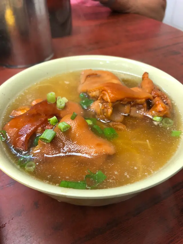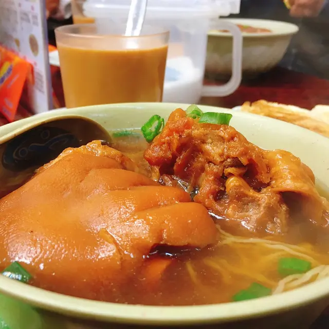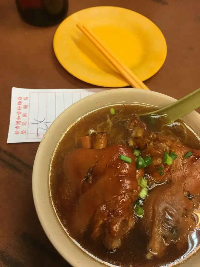 話說前排同寶寶同到美食推介,睇到呢間鋪好名蛋牛治,滿心歡喜一於試下。深水埗有兩間新香園,一間新一間舊,呢間堅記,外貌認真古色古香。一點鐘,lunchtime要等位,阿姐話入得,點知入到去,要等上手客畀錢走,噢,即是趕客服務,急住食急住走,唔好諗住長坐。坐低就畀餐牌價錢價錢嚇親,無套餐,散叫,一麵一包一杯飲品,自制常餐預咗$50-60,貴過茶記少少。寶寶叫我發板,兩個人叫咗蛋牛、西多、豬手麵、沙爹牛、熱奶茶。一上豬手麵,豬手淋膩剛剛好。不過,啲麵好重鹼水味。