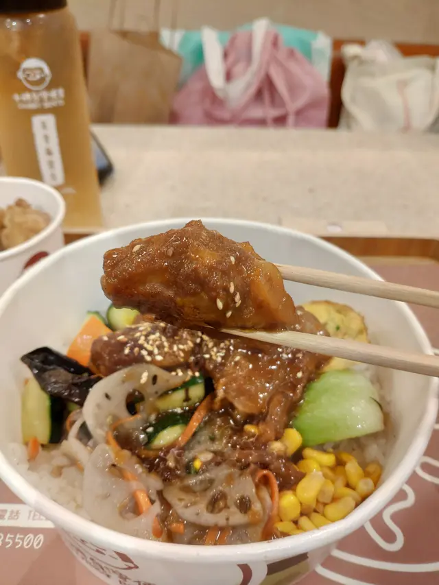白飯用上珍珠米,食落每粒米都好有口感,水份充足配料上有粟米,蓮藕,紅蘿蔔絲,雲耳,青瓜,青菜,蛋皮一啖飯,一啖配料,再加一啖豬軟骨,簡單撲素,但味道係最直接最好食