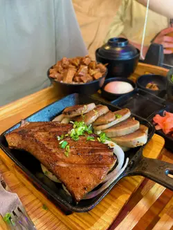 繼土瓜灣的牛舌專門店後,窩夫與蝦子餅終於試了深水埗的GYU TOWN 牛舌專門店。日式小店格局,座位不足20個,用餐期間(星期日下午二時左右)一直坐滿食客。牆上掛着一幅牛舌圖。看看餐牌,食物分三大類,分別是鐵板系列、御.重盒和單點,單點類有丼飯、烏冬和漢堡。點了一客鐵板二重牛舌,加38元轉做升級版套餐,有湯、沙律、汽水,以及滿溢牛舌筋溫泉蛋丼,自製三重大滿足,看來比三重牛舌「飯盒」更吸引。二重牛舌有牛舌尖和牛舌芯,原條牛舌芯非常爽口,入面偏生,未必人人可以接受。牛舌尖口感彈牙,較為軟腍,大人小朋友都喜歡。滿溢牛舌筋溫泉蛋丼的份量比預期多,真的做到「滿溢」的效果,牛舌筋煮得夠腍又入味,味道甜甜的,伴飯一流。安格斯牛板腱配牛舌尖的牛板腱相對遜色,窩夫與蝦子餅的結論是下次再光顧時只吃牛舌就好。…查看更多