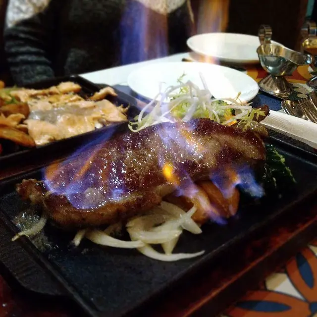 -鐵板燒紐西蘭牛柳❤️($118)一上菜,真係估唔到份量咁多,足足有成3大塊牛柳,平時其他餐廳都唔會有咁大塊,咁多塊牛柳。店員先把酒淋上牛柳😍,再點火燒🔥,最後再淋上黑椒汁,真係好香,厚厚嘅牛柳食落有淡淡嘅酒香❤️,牛柳好軟腍,牛肉味重,依個餐真係好抵食😍-鐵板燒紐西蘭西冷😍($118)店員同樣會先把酒淋上西冷,再點火燒🔥,最後再淋上黑椒汁,西冷都好大塊😎牛肉味濃,好有口感😆-水蜜桃雪葩😆($35)無論食到幾飽,點都要食埋個甜品,水蜜桃雪葩真係好正,侍應會送上雪葩,再用火槍燒雪葩外層,容易食,成個水蜜桃冷藏至結冰後再磨成沙冰😛,入口清甜冰涼,好fresh❤️,好香水蜜桃味,口感似雪糕,超喜歡,作為甜品真係最適合不過☺️-柚子雪葩😘($32)柚子雪葩都好正,酸酸甜甜的,食落好開胃😍,雪葩口感綿密,雪葩真係好好食😎-燒雞凱撒沙律😅($78)雖然份量好多,依個沙律醬嘅味道比較怪🙃-凍咖啡😀(+$3)忌廉鮮奶😌(+$9)羅宋湯😋(隨餐附送)忌廉粟米湯😎(隨餐附送)蒜蓉包(隨餐附送)卜卜脆,充滿蒜蓉味😆-…查看更多