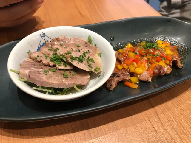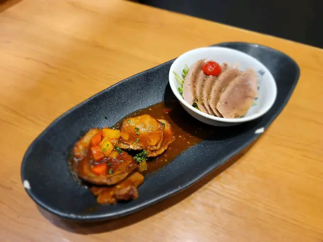 呢日下晝嚟咗觀塘apm嘅呢間拉麵店 呢間拉麵店除咗有吧檯嘅位置🥰 亦都有寬敞嘅卡位 坐得舒服又啱同朋友傾計😙神山豚燒叉燒沾汁麵沾麵湯係用豬骨 日本魚介同醬油熬成 味道帶鮮 唔會過鹹🫢 沾麵仲有兩大片叉燒 叉燒用咗日本嘅豬肉 沾麵用咗粗嘅坑紋麵 令麵條更加掛汁🍜赤神山豚角拉麵呢個湯底第一啖飲落真係幾嗆喉 但係食落又幾刺激 兩件豚角肥瘦層次分明 口感非常好🐷 拉麵麵條彈牙 幾好味🤤雙色牛舌好少見呢款小食 所以就叫咗呢個🐮 牛舌有兩種口味 一款係冷盤嘅黑椒味 另一款係熱食嘅西式醬汁 牛舌口感彈牙 兩款口味都唔錯👅薯片雞翅呢個單骨雞翼外層係薯片 食落感覺熟悉得嚟又陌生 因為好少係咁嘅配搭 真係特別得嚟又有驚喜🐥 即使係單骨都非常大隻神山炸雞 芥末醬呢個炸雞炸得香口得嚟 入面仲有肉汁😮 配上芥末醬就更加惹味🤩 幾推介呢個小食ZeroMenu上都有其他特色飲品嘅 不過今日咁熱真係好想飲可樂🥤 呢間拉麵店除咗麵好食之外 小食都非常驚喜 真係好推介嚟呢度食拉麵啊🥰…查看更多