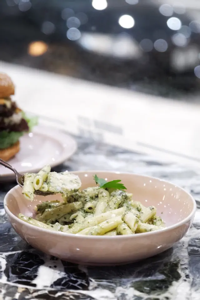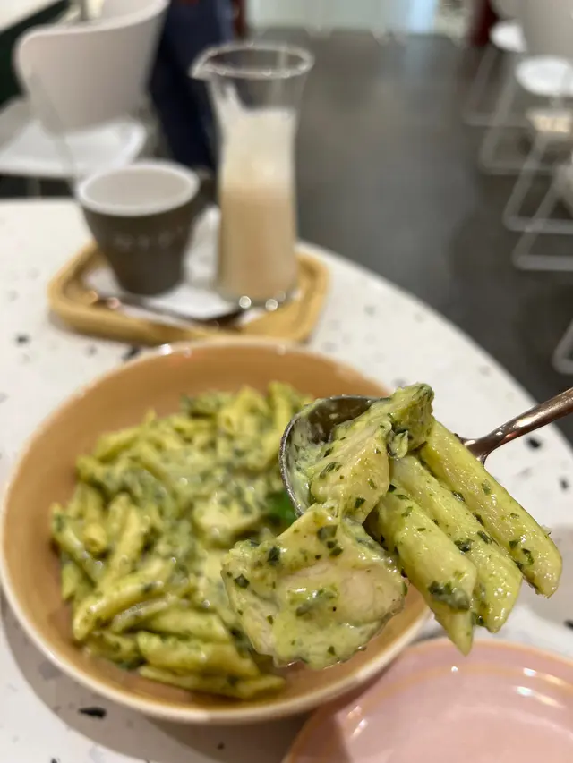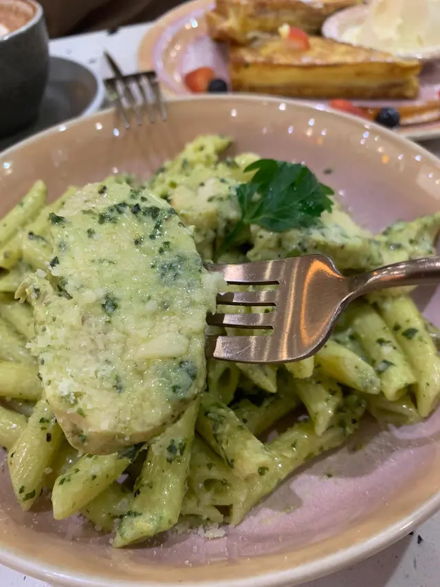 期待已久的青醬雞肉忌廉長通粉,雞肉嫩滑唔乾😋長通粉夠煙靭又掛滿青醬汁😋最有驚喜的墨西哥夾餅配慢煮豬肉及莎莎醬,少有可以係咖啡食taco,裡面充滿了多汁的豬肉,還有很多香菜和紫洋蔥。與莎莎醬搭配,充滿異域風情