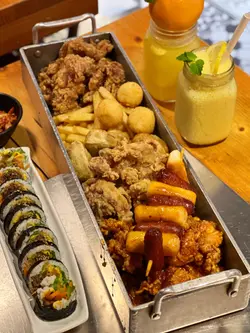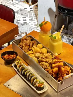 這間人氣韓國餐廳位於尖沙咀港匯廣場,鄰近K11購物藝術館,主打正宗地道的韓國料理,由韓國人親自主理,大部份原材料均由韓國直送。店內環境寬敞舒適,設有室內外座位,裝潢以小酒館為主題,有五彩繽紛的燈泡,充滿活力及時尚感,適合多人聚會。韓式前菜泡菜香辣爽脆;涼拌青瓜清脆多汁且微辣;涼拌薯絲清脆爽口;涼拌魚糕彈牙有嚼勁,帶有鮮味。50CM炸物拼盤 - $388超長的拼盤有七款炸物,份量足夠四人。即叫即炸的韓式炸雞金黃酥脆而不膩,雞肉嫩滑多汁而不柴,裹上三款不同的醬汁,均勻地附著在炸雞上,醬油蒜蓉味鹹香中帶有蒜頭的甘甜及醬油的濃郁風味,牛油蜜糖味香甜帶鹹,甜辣滑順濃稠且香甜微辣;年糕香腸串的韓式香腸外皮烤得酥脆,一咬下去會有豐富的肉汁爆出,而年糕煙煙韌韌好彈牙;炸餃子內餡飽滿,有鮮美多汁的免治豬肉,又有清新的蔬菜;芝士波富奶香,有拉絲效果;薯條外脆內軟,有軟糯的薯肉。BINGO特製紫菜包飯 - $80豐富且多層次的韓式飯卷,有軟嫩多汁的牛肉,又有半溶化的芝士富奶香,清脆爽嫩的黃瓜及醃蘿蔔,米飯以麻油和鹽調味帶有鹹香,清新而不膩口。香橙沙冰 - $78採用一整個香橙製作,沙冰打得幼滑細膩,毫無冰塊感,酸甜交織的果香好濃郁。芒果沙冰 - $78沙冰同樣綿密又滑順,濃郁的芒果香氣酸酸甜甜好清爽。…查看更多